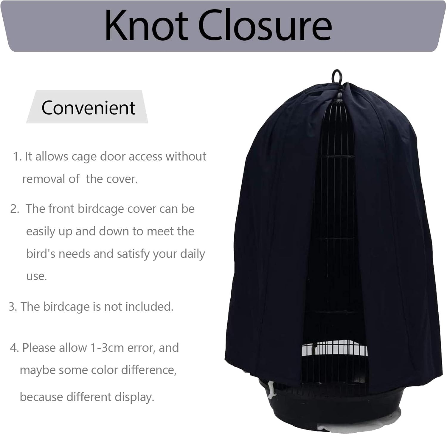 - Unique Design - Convenient knot closures are designed for easy installation and removal. The front birdcage cover can be easily up and down to meet the bird's needs and satisfy your daily use