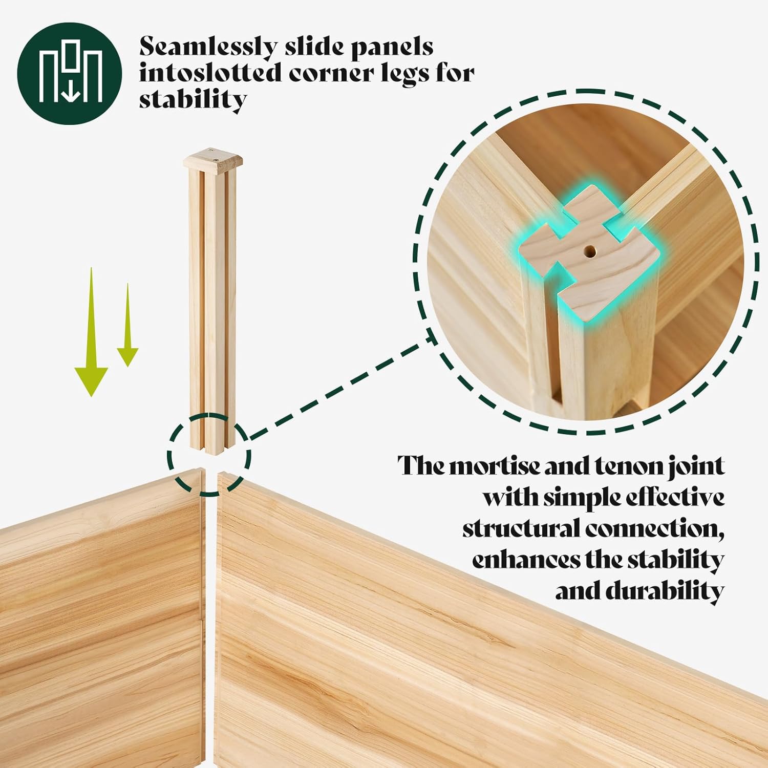 • Tool-Free Assembly with Mortise & Tenon Joints: The raised bed features a mortise and tenon design for effortless, tool-free setup, ensuring a stable and secure structure that withstands the elements.