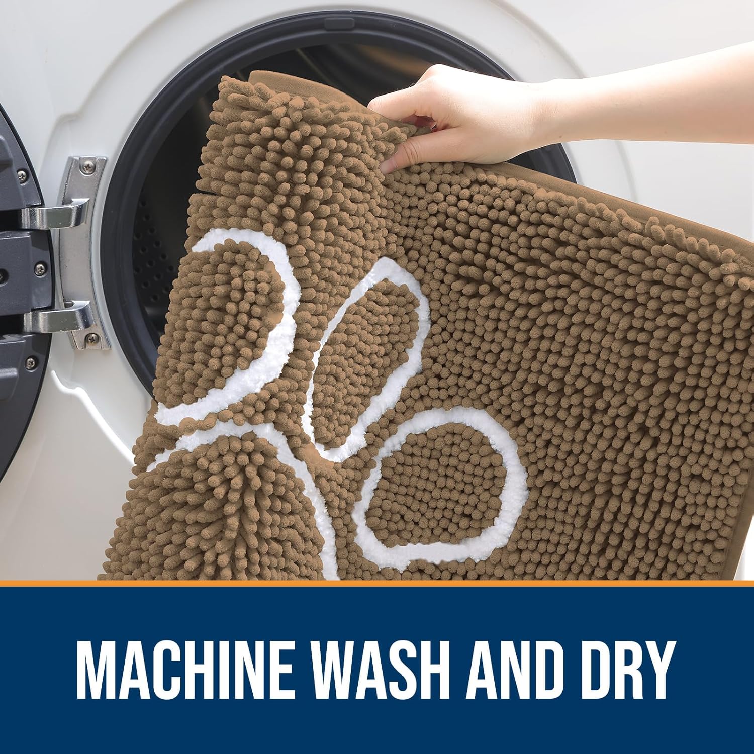 OLANLY Door Mat for Muddy Dog Paws 70x46, Ultra Absorbent Chenille Mud Doormat with Paw Print Design, Non-Slip Washable Doormat for Indoor Entryway, Quick-Dry Pet Bed Mats for Dirty Dogs, Tan