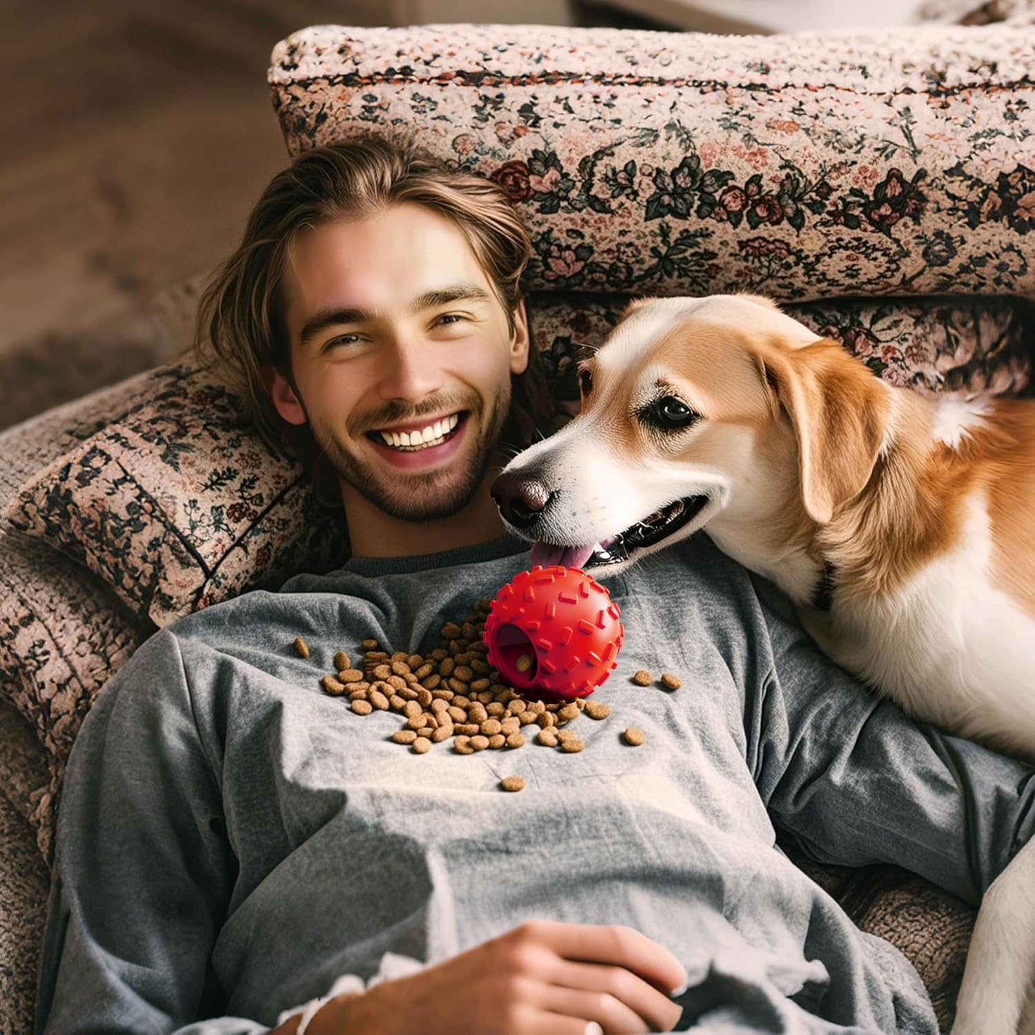 - [Interactive Dog Toy for Boredom – Treat Dispensing & Mental Stimulation]This interactive dog ball is designed to prevent boredom while stimulating your dog’s mind. Made from eco-friendly natural rubber, it's safe, durable, and easy to clean. Simply add treats inside the ball to provide 20-40 minutes of fun, keeping your dog occupied and mentally engaged. It’s perfect for all dog sizes and works as a great tool for anxiety relief, reducing destructive behaviors caused by stress or loneliness—an ideal choice for dog toys to keep them busy and mental stimulation dog toys.
