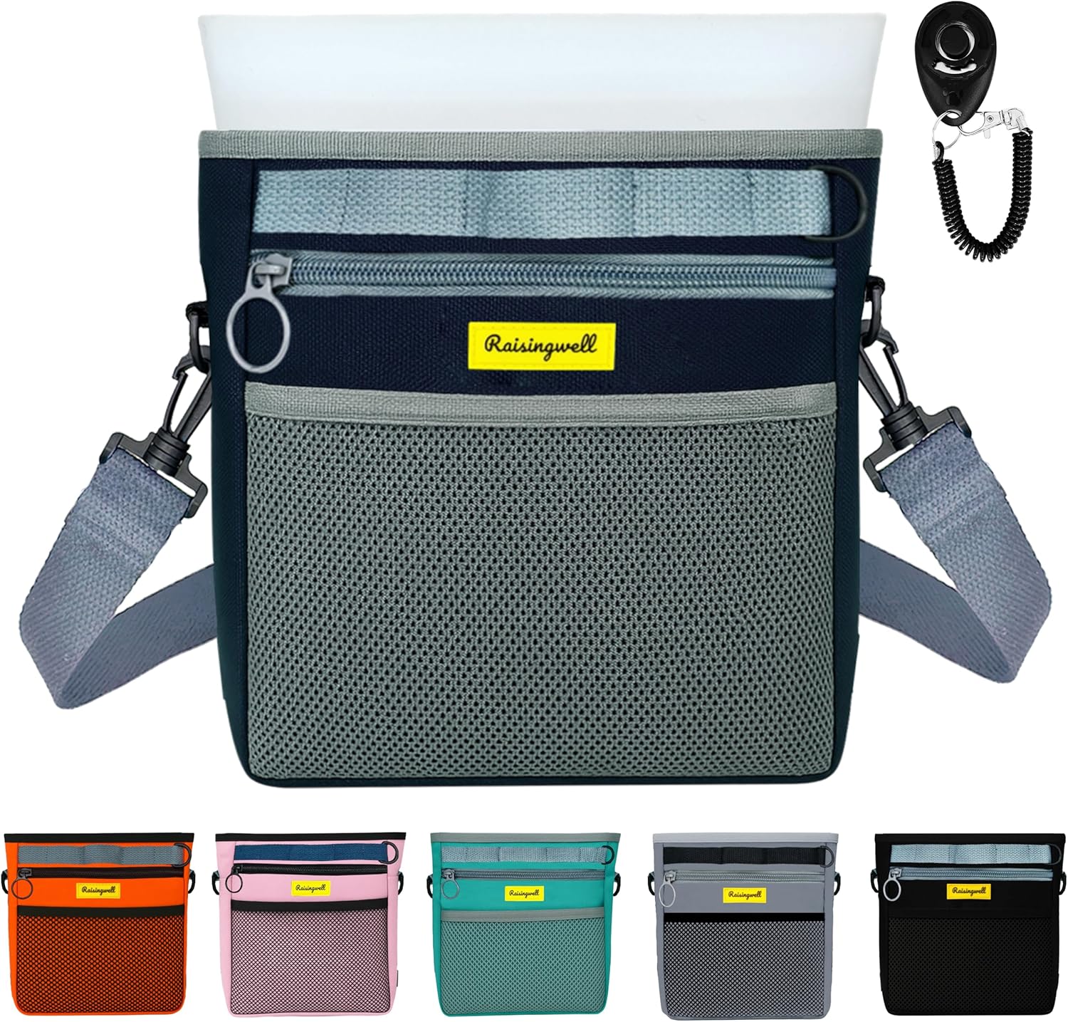 • 5.Durable Tech Material: Raisingwell's dog treat training pouch is made from durable, washable, and non-toxic fabric. Notably, its waterproof lining solves the problem of difficult-to-clean interiors of training bags, making it a great choice for your dog treat bag or dog treat fanny pack.