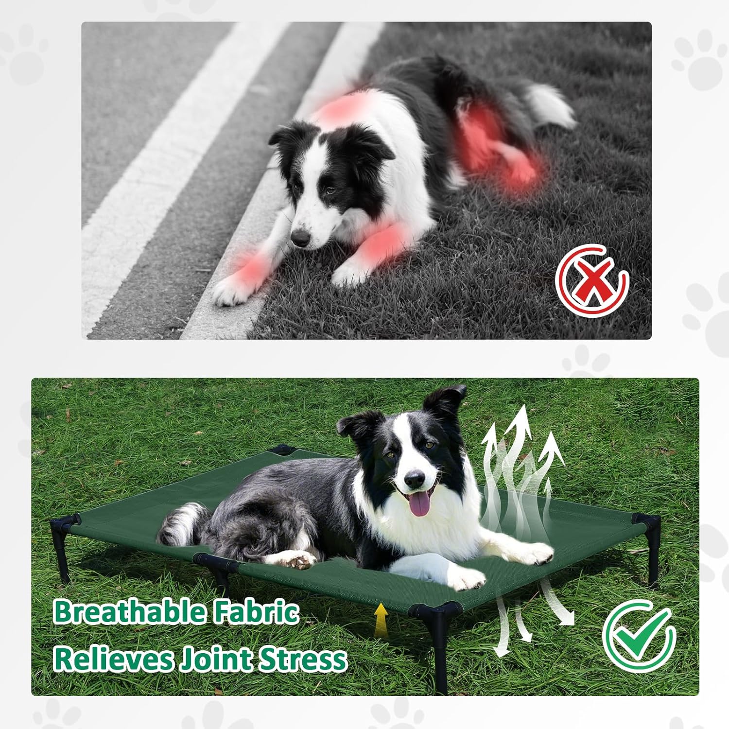 42 Inch Cooling Elevated Dog Cots Beds for Large Dogs, Lifted Pet Hammock Bed with Washable & Breathable Mesh, Non-Slip Feet, Raised Dogs Place Bed (L, Green)