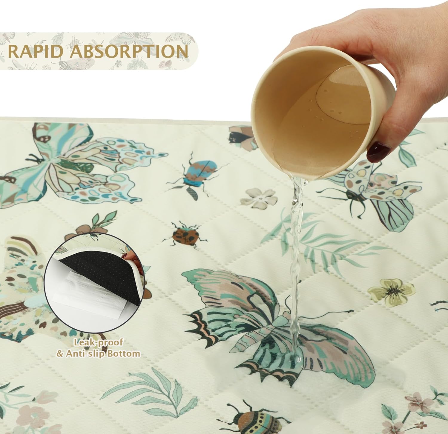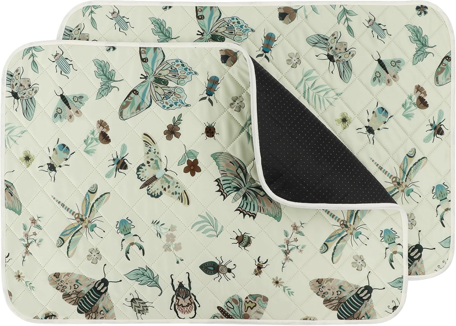 IEUUMLER Washable Pee Pads for Dogs, 2 Pack Insect Pattern Reusable Waterproof Puppy Potty Pads, Non-Slip Absorbent Pet Training Pads for Playpen Crate Bed EU014