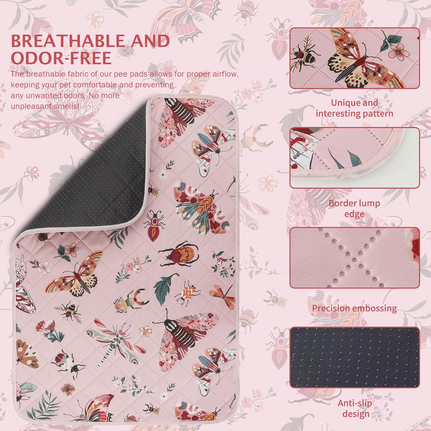 IEUUMLER Washable Pee Pads for Dogs, 2 Pack Insect Pattern Reusable Waterproof Puppy Potty Pads, Non-Slip Absorbent Pet Training Pads for Playpen Crate Bed EU014