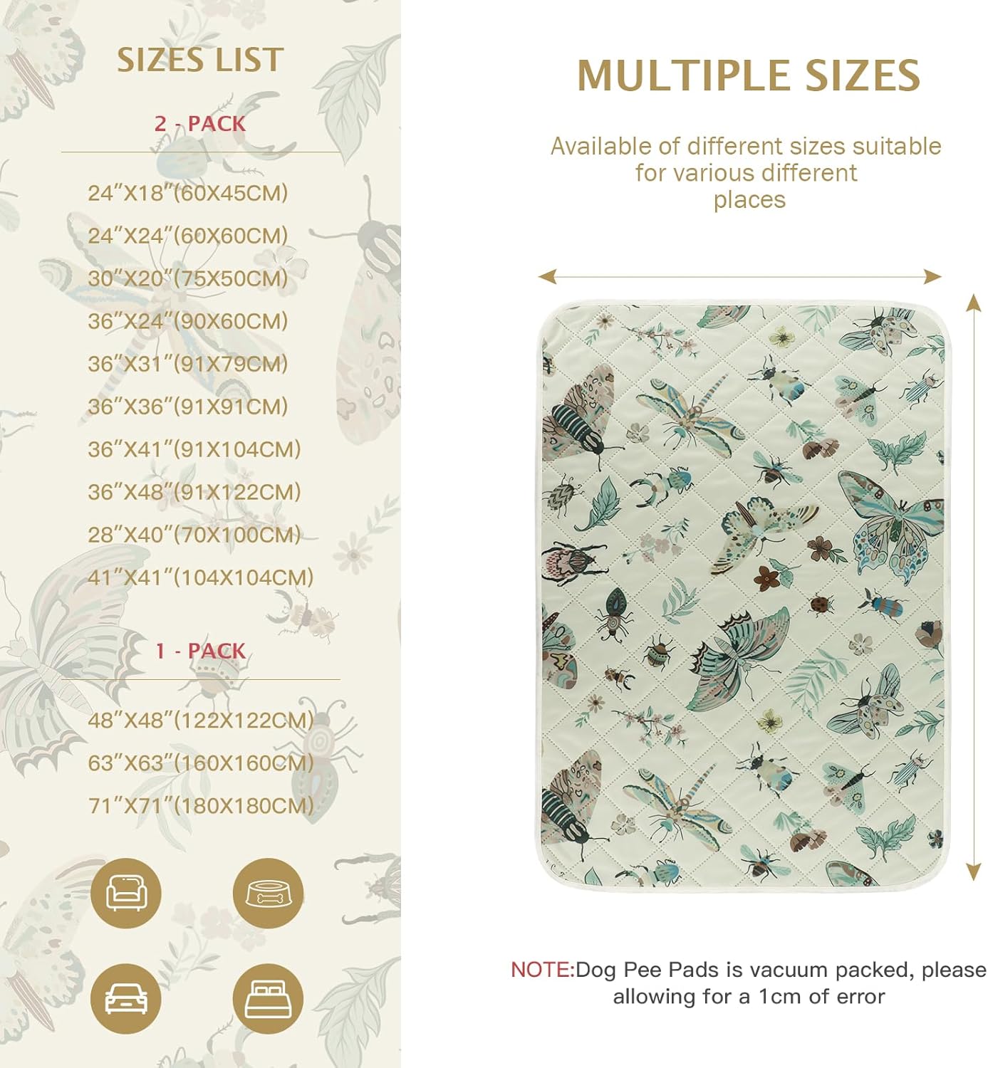 IEUUMLER Washable Pee Pads for Dogs, 2 Pack Insect Pattern Reusable Waterproof Puppy Potty Pads, Non-Slip Absorbent Pet Training Pads for Playpen Crate Bed EU014