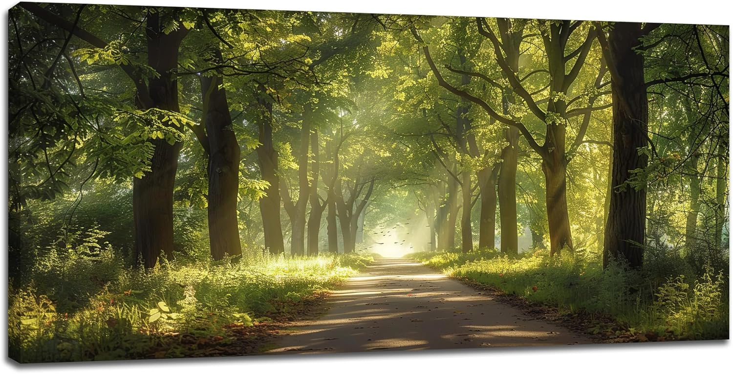 Large Forest Tree Wall Art Canvas Living Room Nature Green Pictures Framed Prints Oversize Wall Decor Landscape Painting for Bedroom Dining Office Home 60"x30"