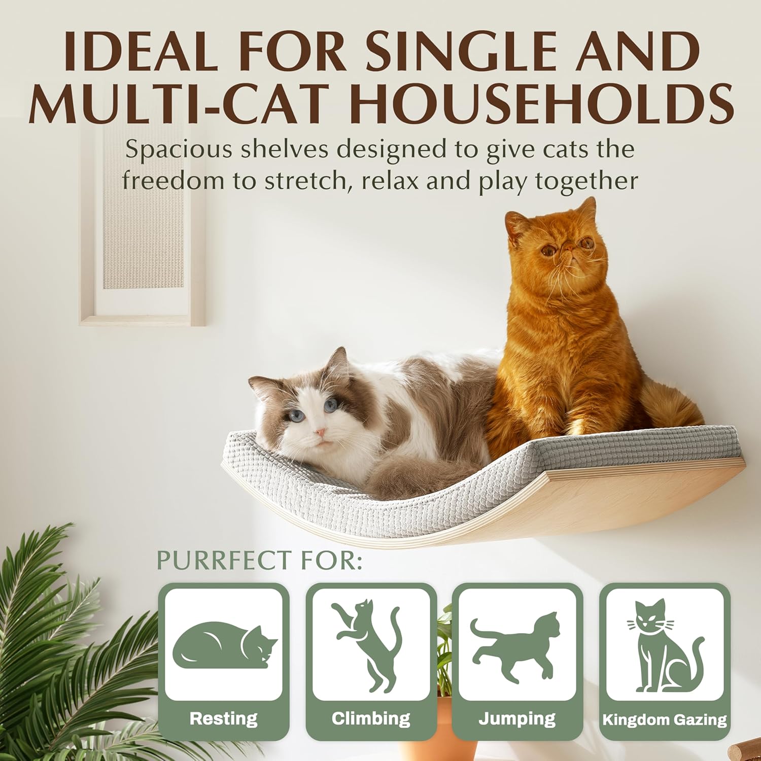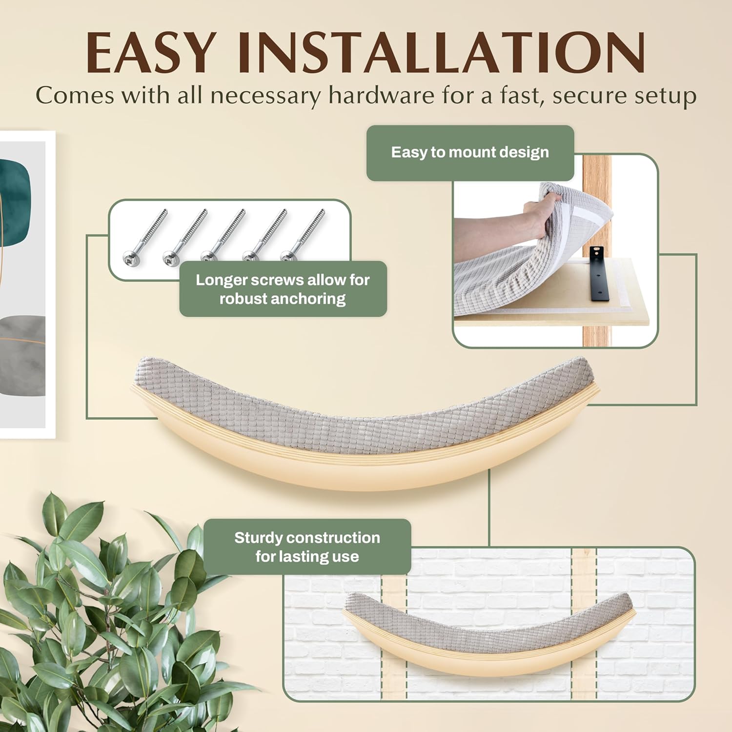 • HIDDEN MOUNTS & MINIMALIST STYLE – The floating cat shelf maximizes space while blending seamlessly into any home. Its hidden mounts and screws create a modern, minimalist look, making it a stylish addition to any cat climbing wall or wall-mounted cat furniture setup.
