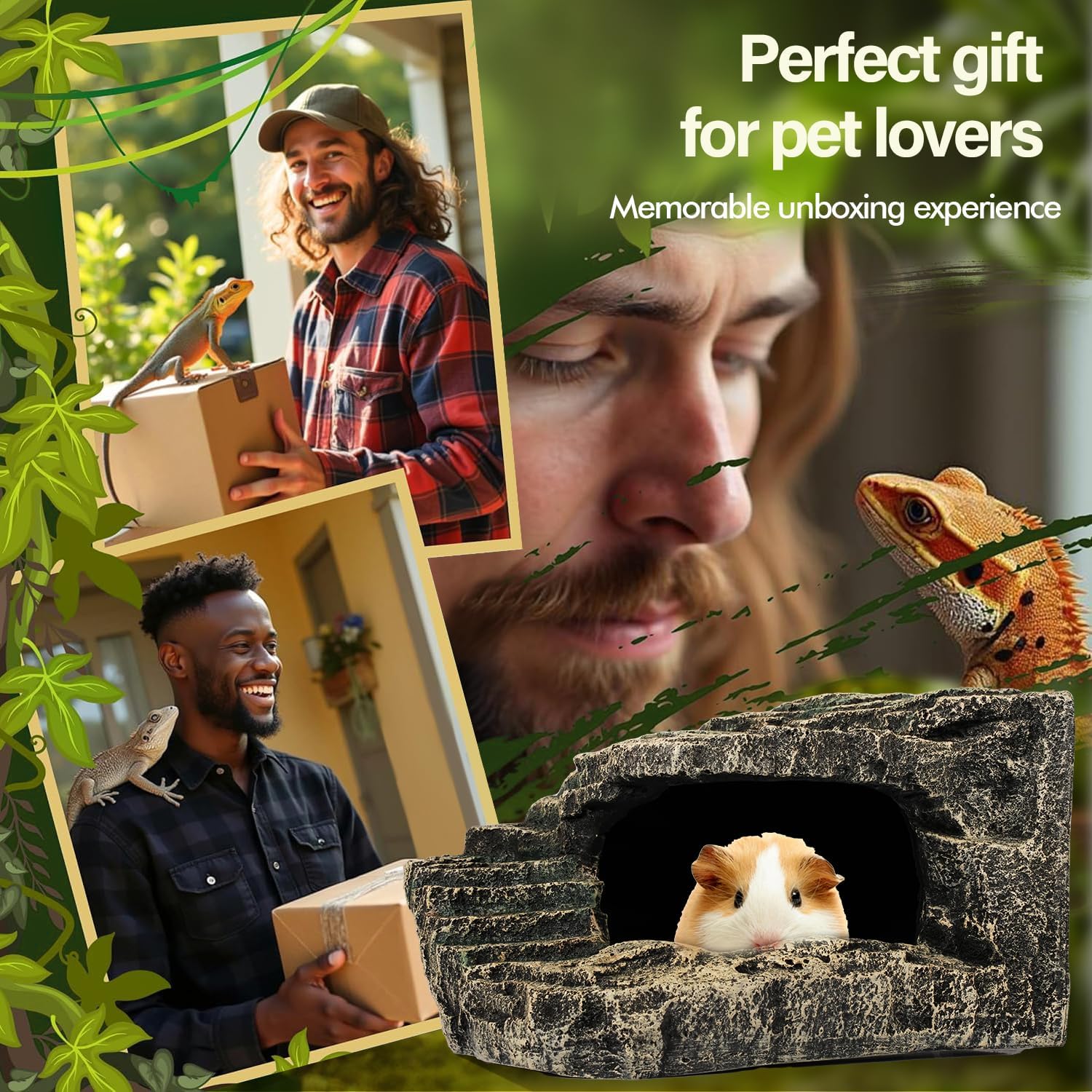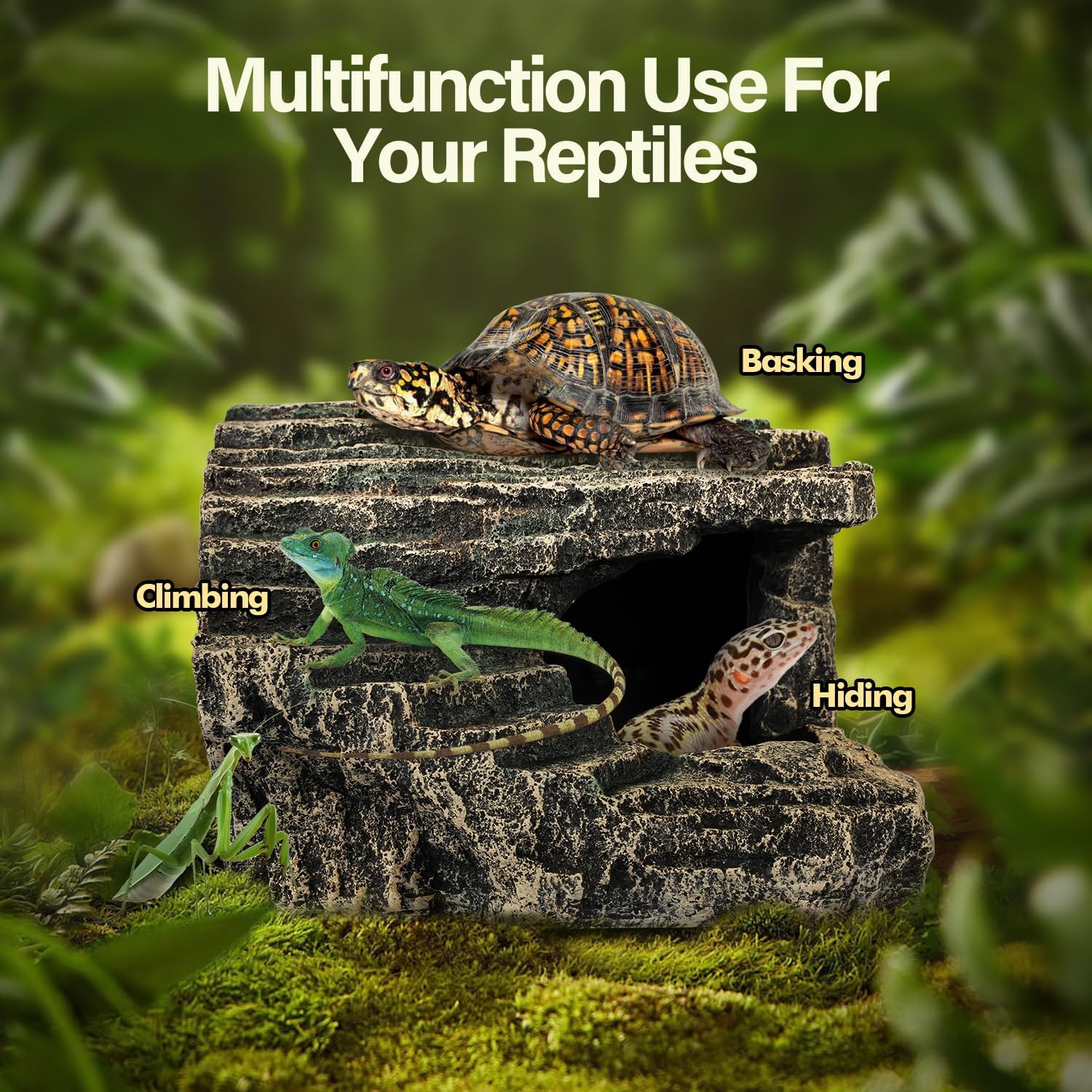 • IDEAL REPTILE BASKING ROCK: This hideout doubles as an excellent reptile basking rock. It offers a perfect spot for your reptile to soak up warmth and light. Whether your pet is a bearded dragon or a gecko, they'll enjoy relaxing on it, making it an essential part of their habitat