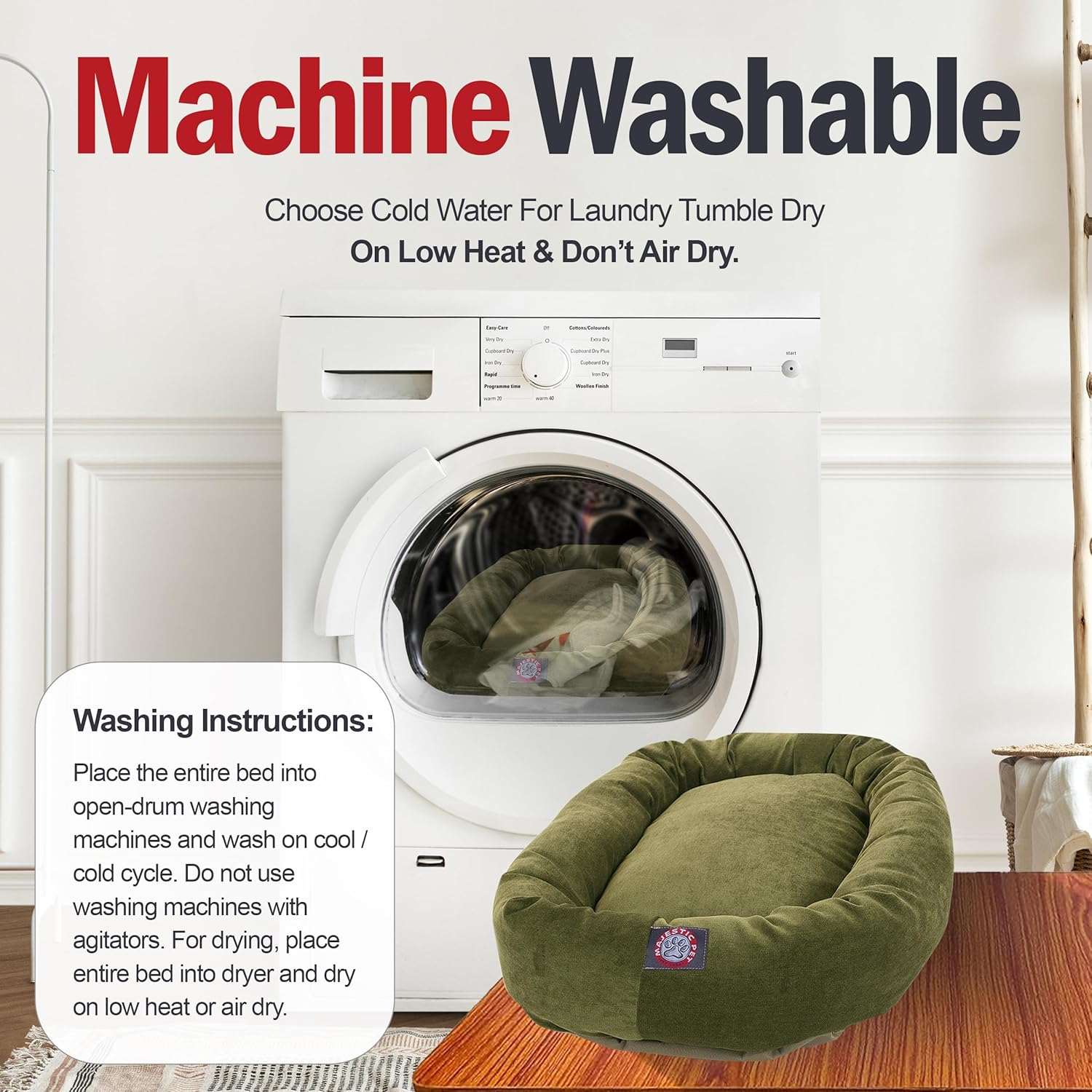 Majestic Pet 40 Inch Micro Velvet Calming Dog Bed Washable 40x29x9 (inch) – Cozy Soft Round Donut Dog Bed with Spine for Head Support - Pet Bed Large – Fern (2025)