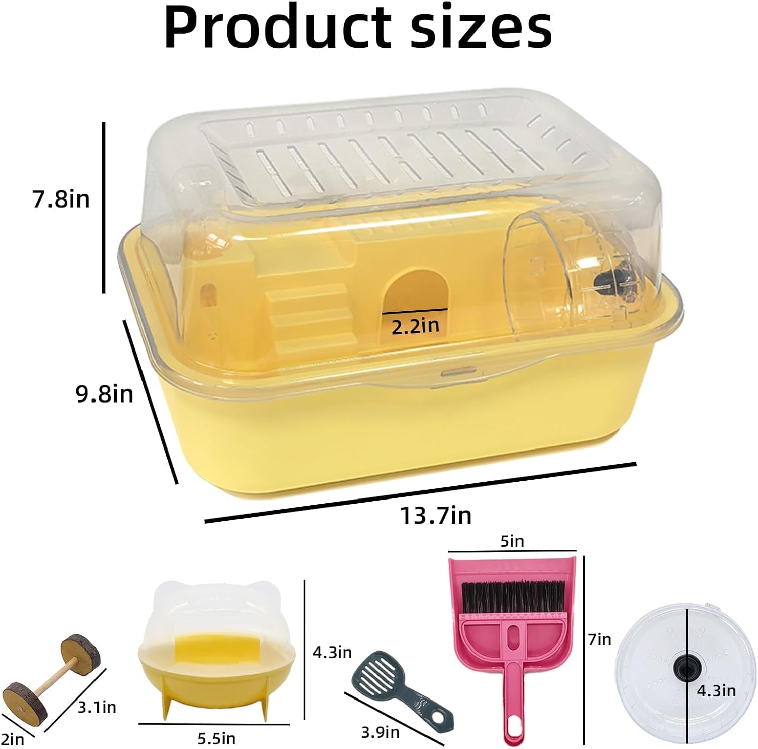 Hamiledyi Small Hamster Cage Clear Plastic Hamster Cage Portable Carrier with Water Bottle Exercise Wheel Bathtub Box Set Toy for Dwarf Baby Hamster (Yellow)