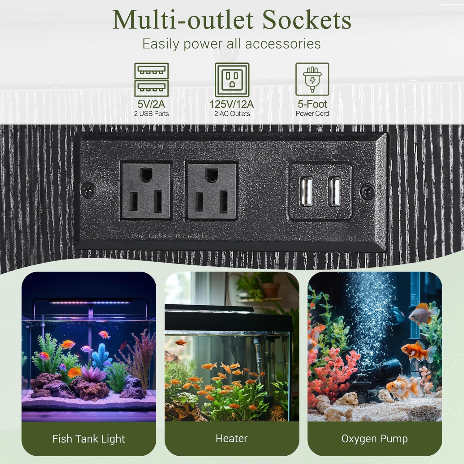 - 【Bulit in Power Outlets】The 20-29 gallon aquarium stand comes integrated with 2 AC and 2 USB outlets, optimally catering to all your aquarium & reptile device power needs