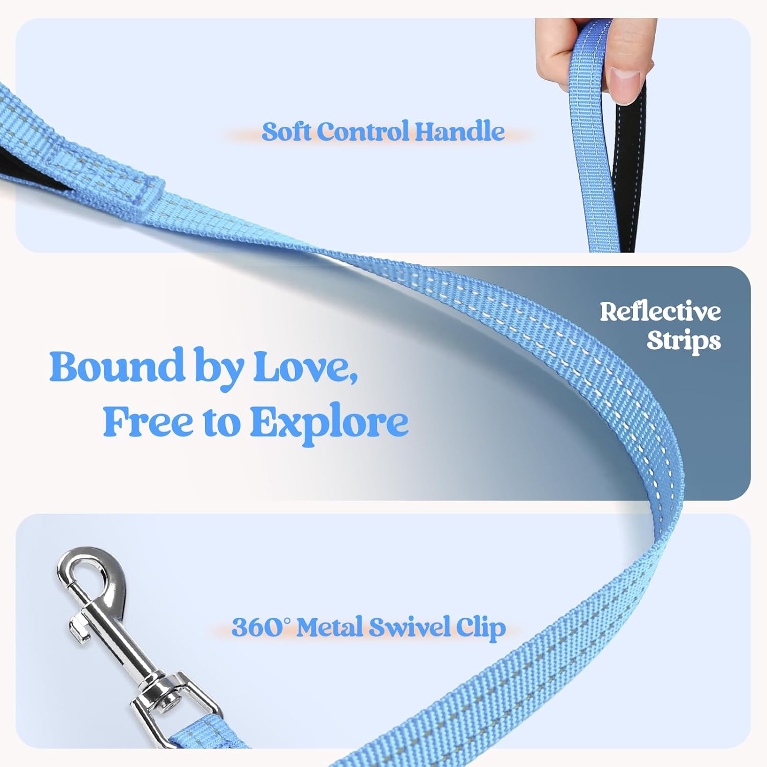 - Dog Harness with Leash SetοΌThe color-matching harness and leash with reflective bands make it fashion and visible for pet outing. The leash is 5.15ft in length, with an anti-tangling clip and a palm-friendly handle
