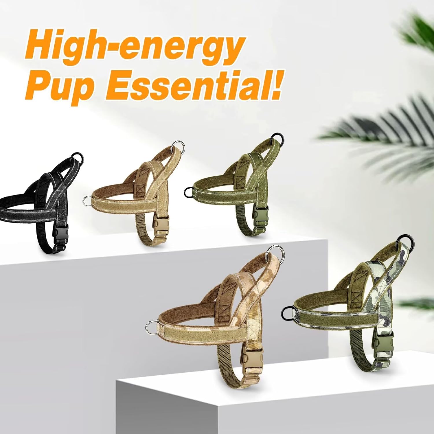 Forestpaw No Pull Dog Harness - Soft Flannel Padded Tactical Dog Vest Harness with Quick Release Buckle, Adjustable Reflective Pet Harness for Medium Dogs Walking Training,Green M
