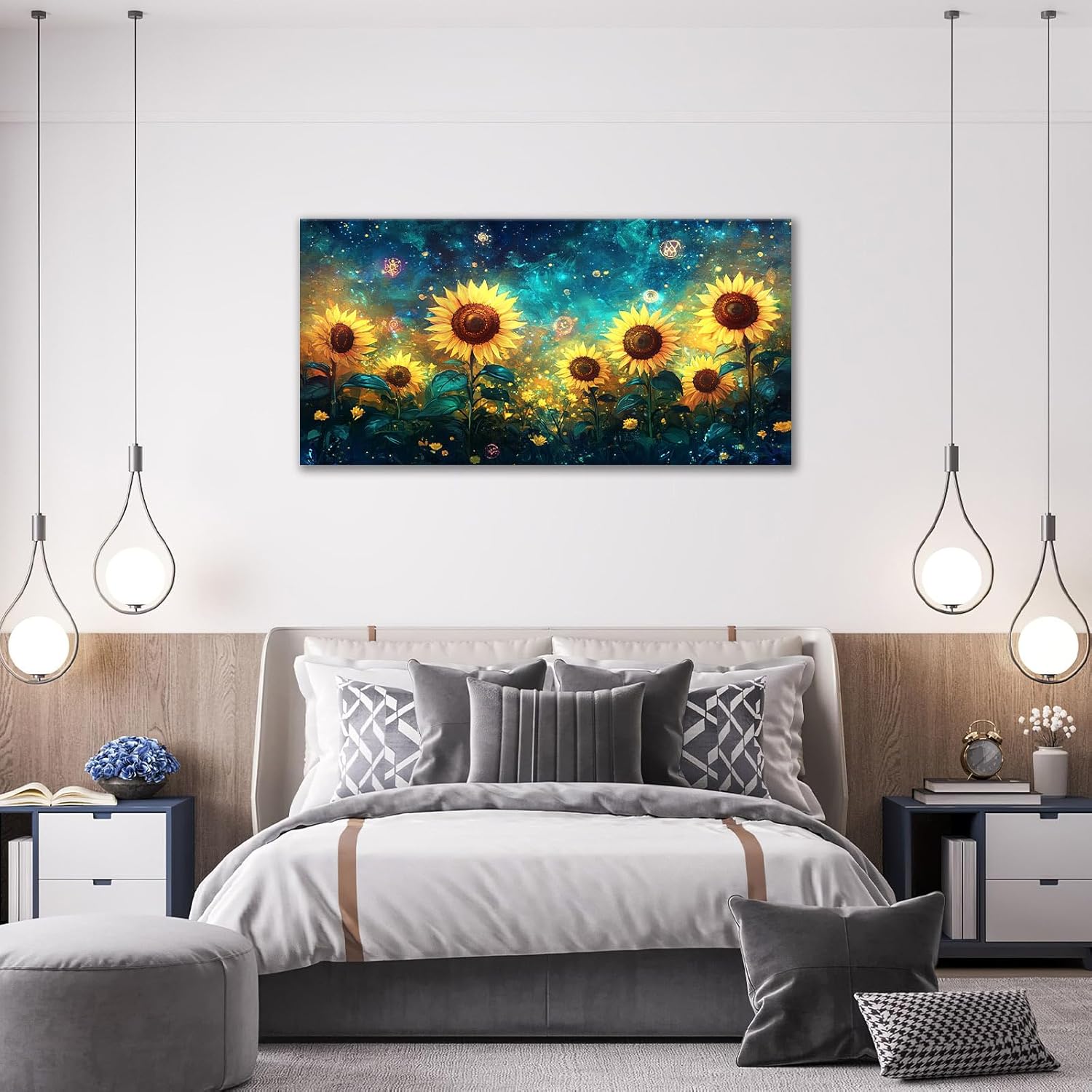 Quorin Sunflower Large Wall Art Starry Night Sky Pictures Sunflower Fields Wall Decor Canvas Print Painting Artwork for Bathroom Living Room Bedroom 30"x60"