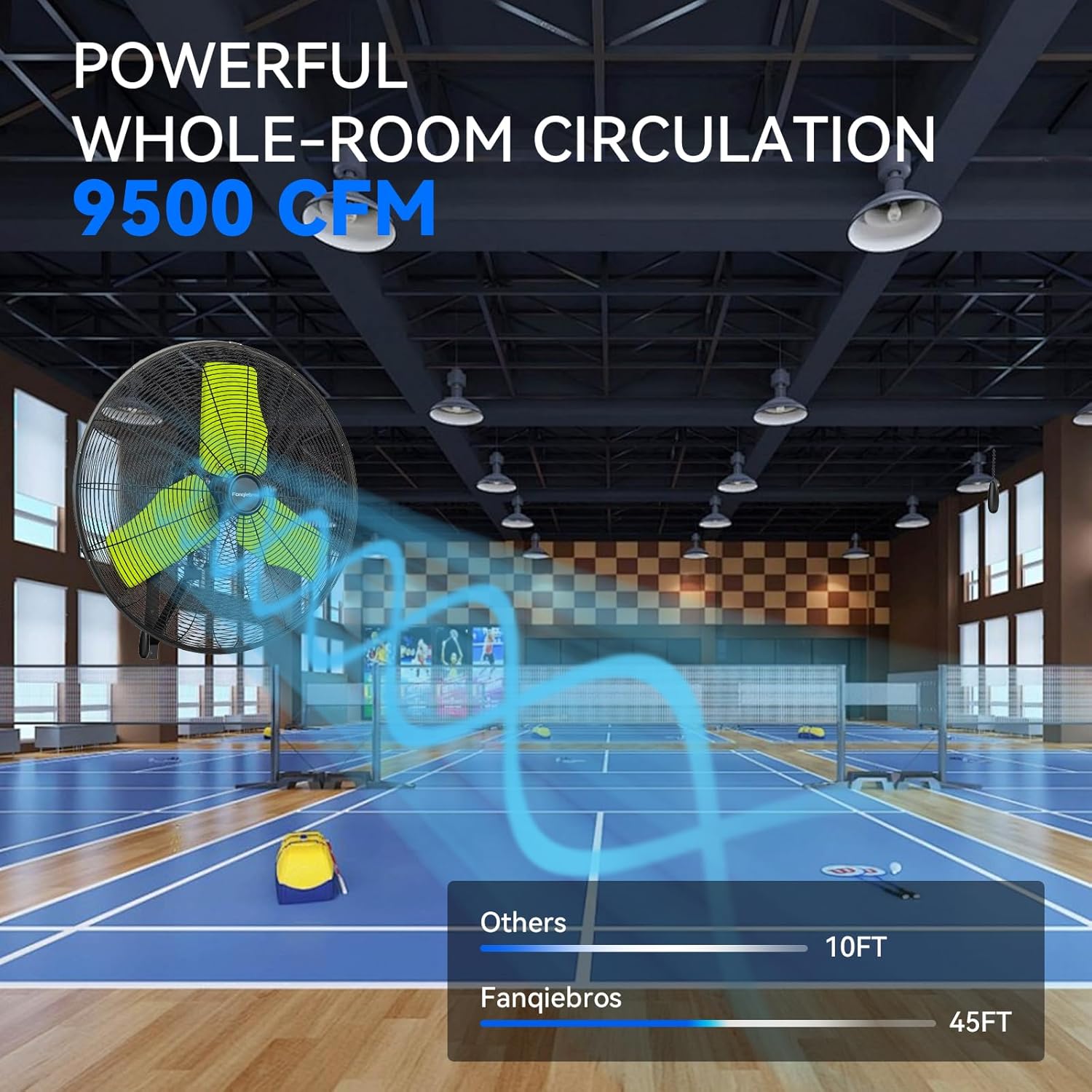 • š‹šØš°-ššØš¢š¬šž šƒšžš¬š¢š š§ - The heavy-duty wall fan operates at a high speed of 9500 CFM with a noise level of only 65dB, which is lower than the industry standard, creating a quieter gathering or working environment