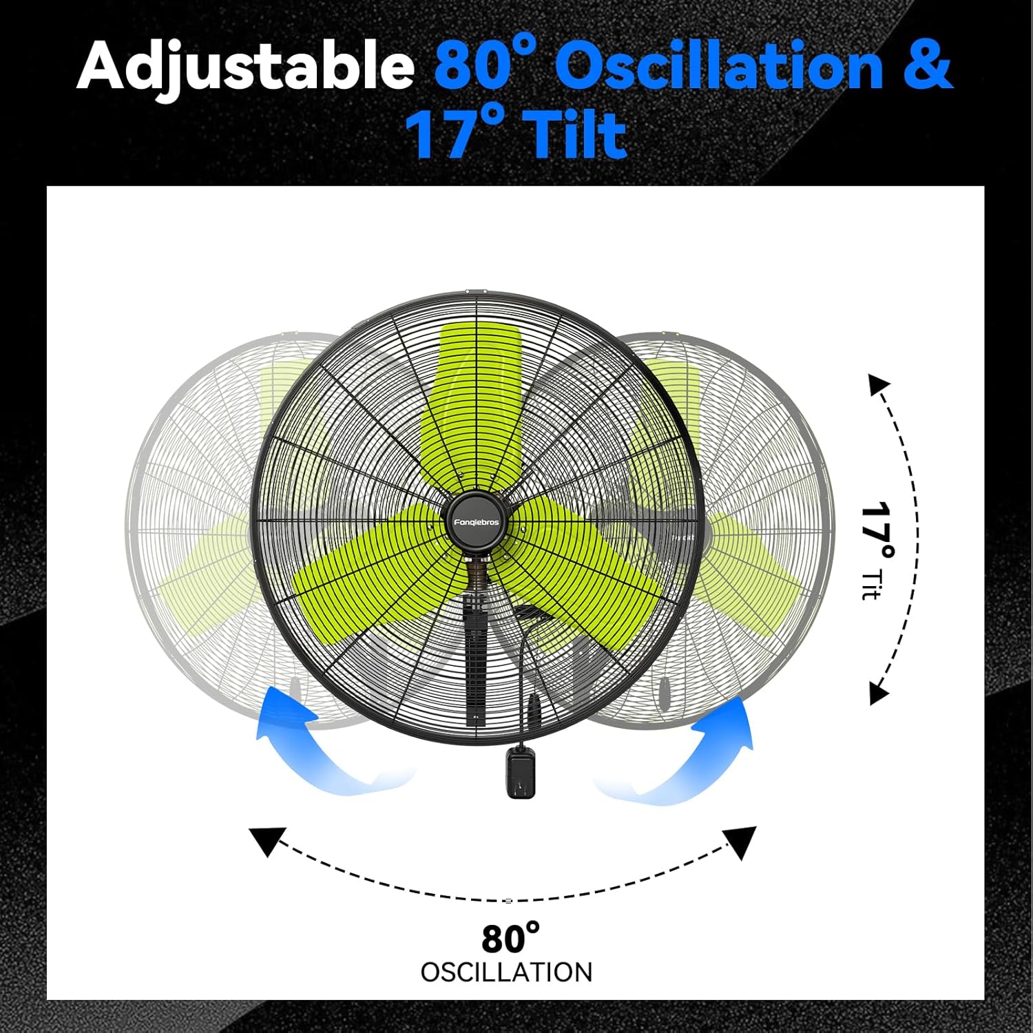 • š‡š¢š š” š•šžš„šØšœš¢š­š² š€š¢š« š…š„šØš° - The oscillating wall fan zipper design makes the operation more intuitive and simple, and can be adjusted from high, medium and low speeds by zipper to meet different needs. High speed 9500 CFM, medium speed 8000 CFM, low speed 7200 CFM, providing hurricane-like airflow to meet your garages, shops, covered patios, or anywhere else you need