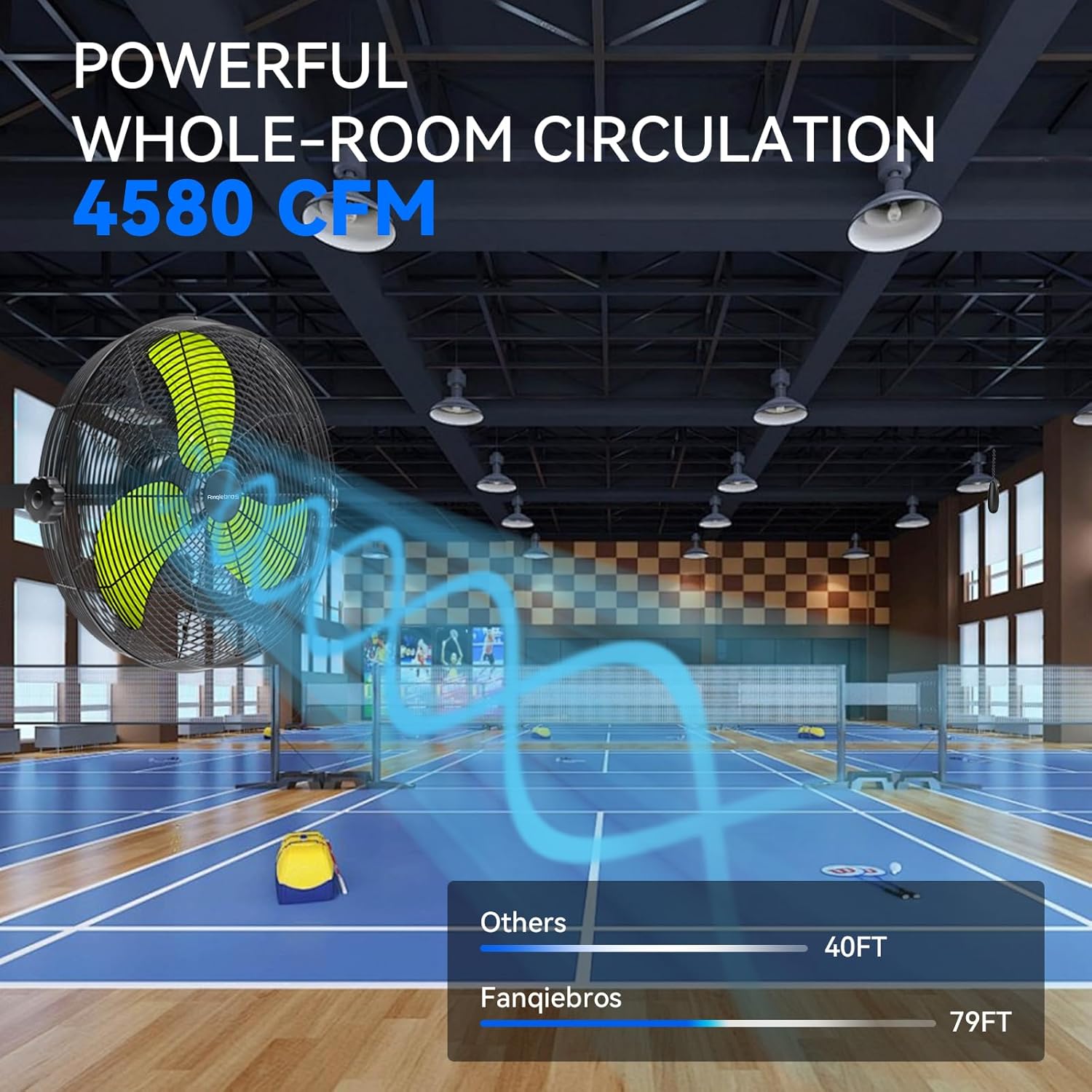 • š‹šØš°-ššØš¢š¬šž šƒšžš¬š¢š š§ - The heavy-duty wall fan operates at a high speed of 4580 CFM with a noise level of only 60dB, which is lower than the industry standard, creating a quieter gathering or working environment