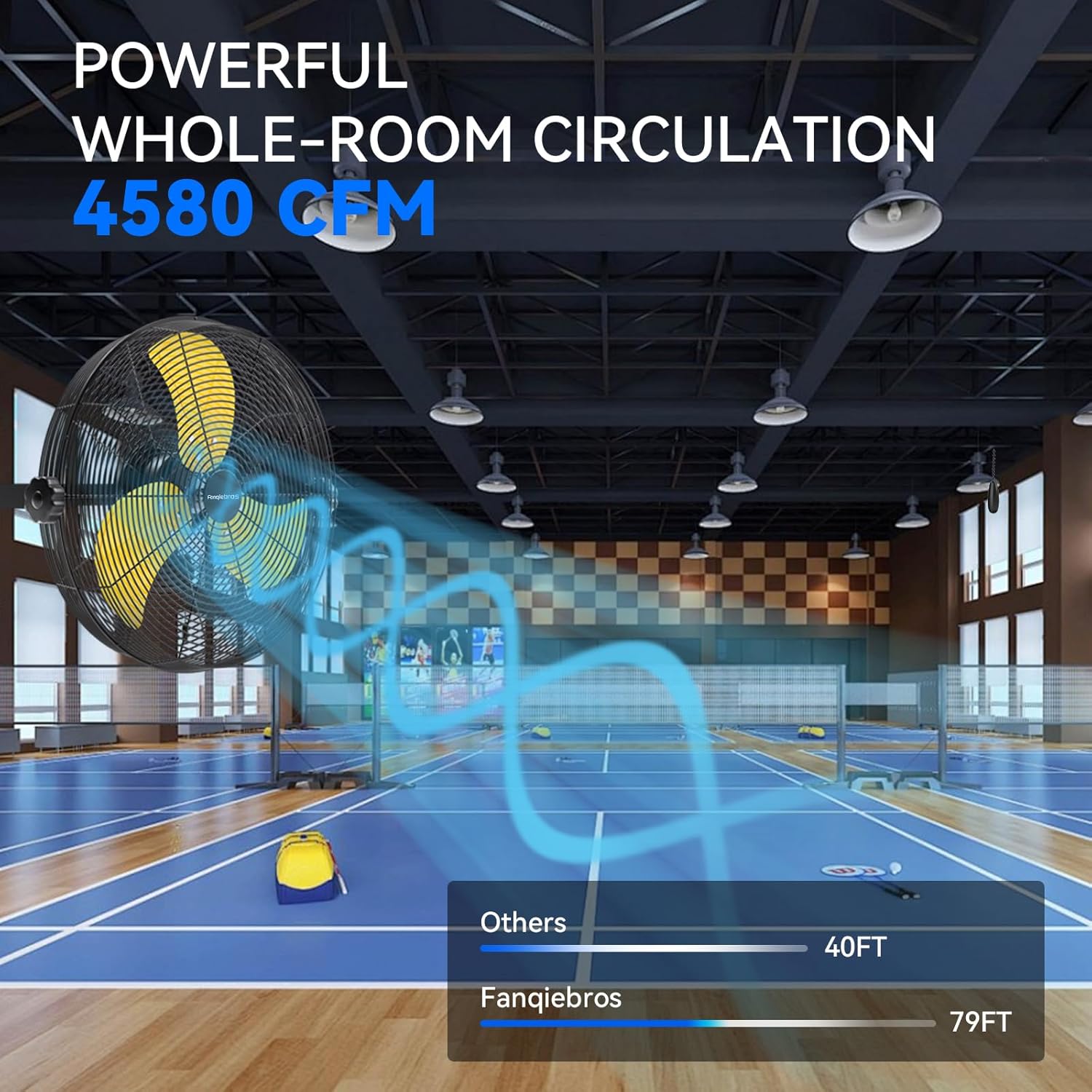 - ššØš°-ššØš¢š¬š ššš¬š¢š š§ - The heavy-duty wall fan operates at a high speed of 4580 CFM with a noise level of only 60dB, which is lower than the industry standard, creating a quieter gathering or working environment