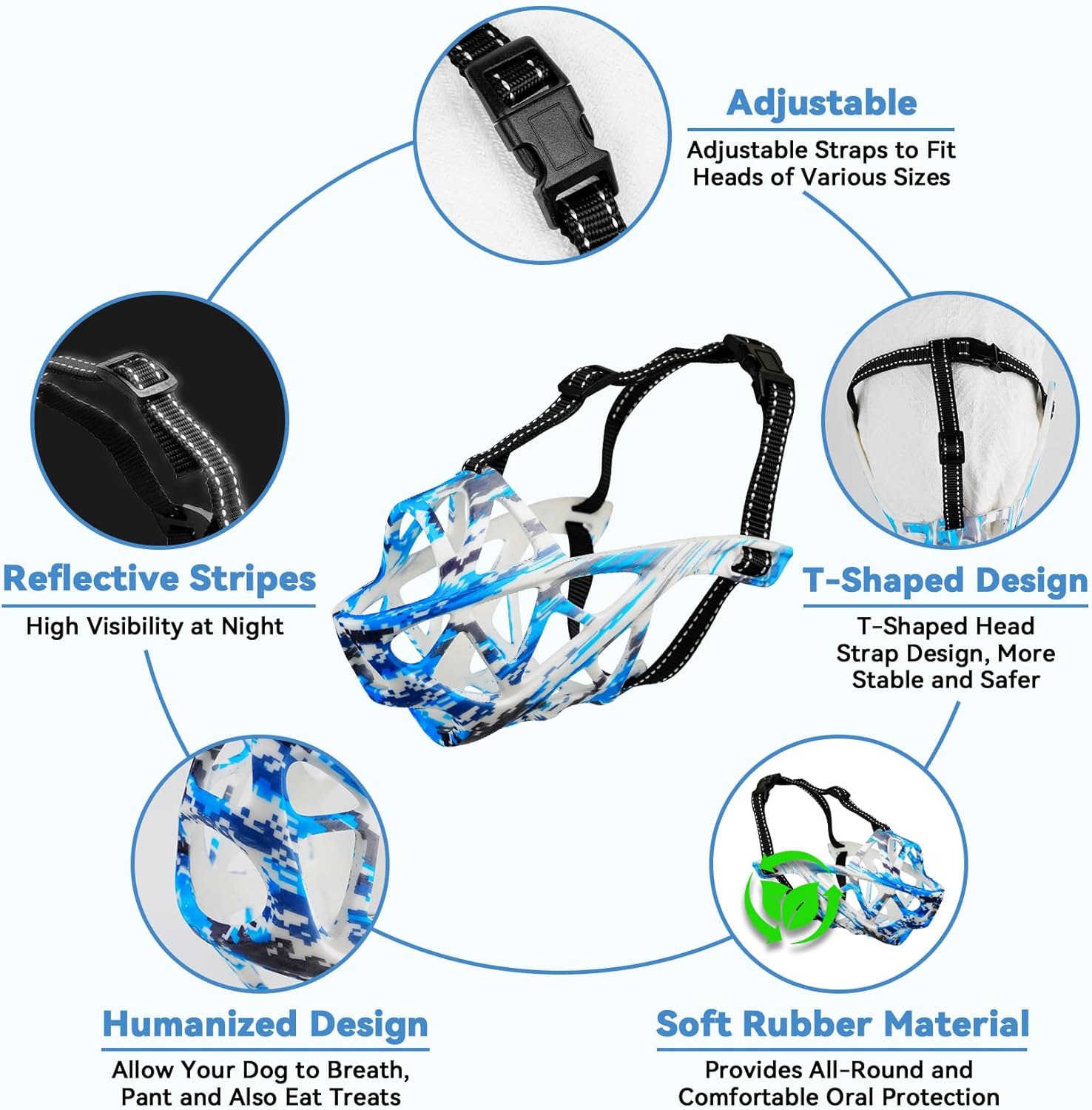- Easy to Put on and Remove: Designed for Convenience, The Adjustable Straps on Our Dog Muzzle Allow for Quick and Secure Fitting. The Ergonomic Design Ensures a Hassle-Free Experience for Both You and Your Dog, Making it Ideal for Daily Walks, Training Sessions, Or Visits to the Vet. Reflective Strap Design Provides Night Travel Safety
