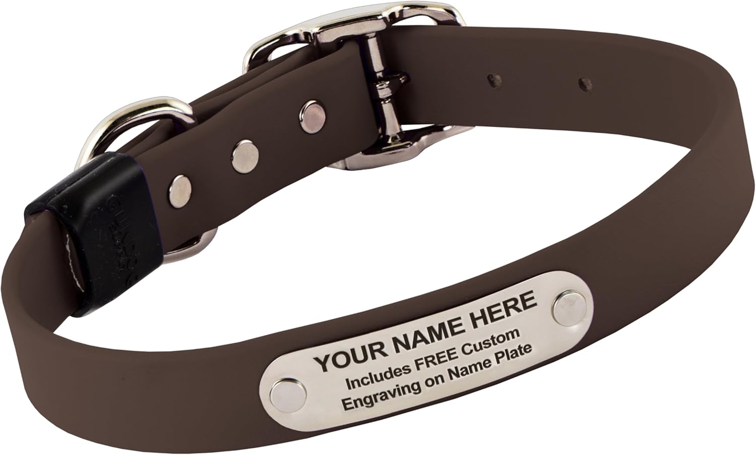 Biothane Custom Dog Collar – Waterproof, Stink-Proof Personalized Collar with Name & Phone Number – Durable, Many Sizes and Colors – Assembled in USA (Chocolate Brown)