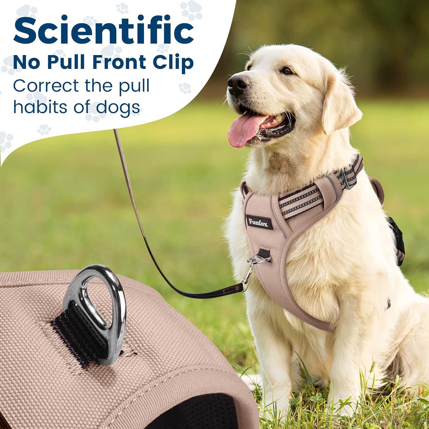 Funfox Dog Harness No Pull, Adjustable Pet Vest Harness, Super Soft Material with Vertical Handle Easy Control, Reflective Night Walking, 2 Leash Clips for XLarge Dogs, Brown, XL
