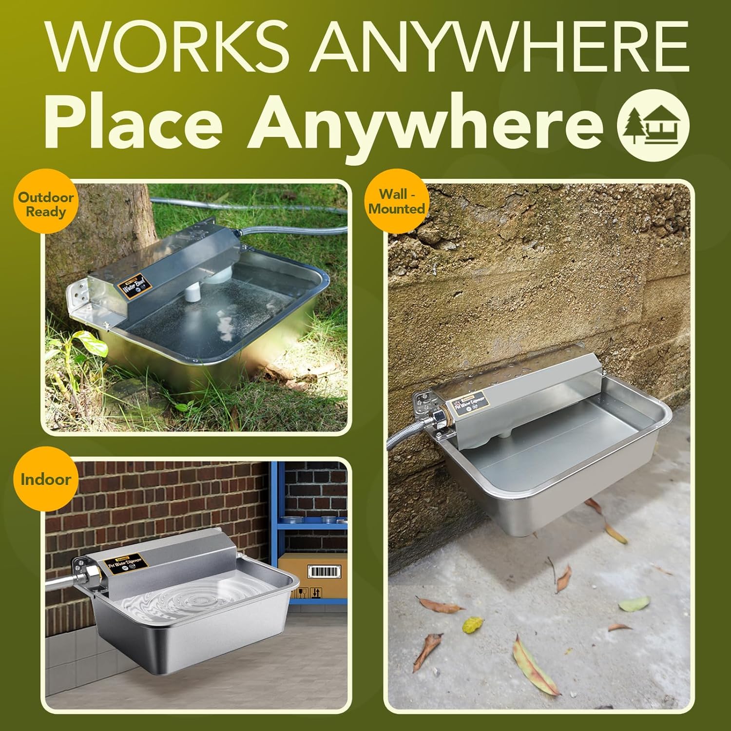• Versatile Use: This stainless steel animal water bowl provides a steady water supply for dogs, stray cats, rabbits, poultry, livestock, and small animals. It’s ideal for use in farms, gardens, dog parks, and more