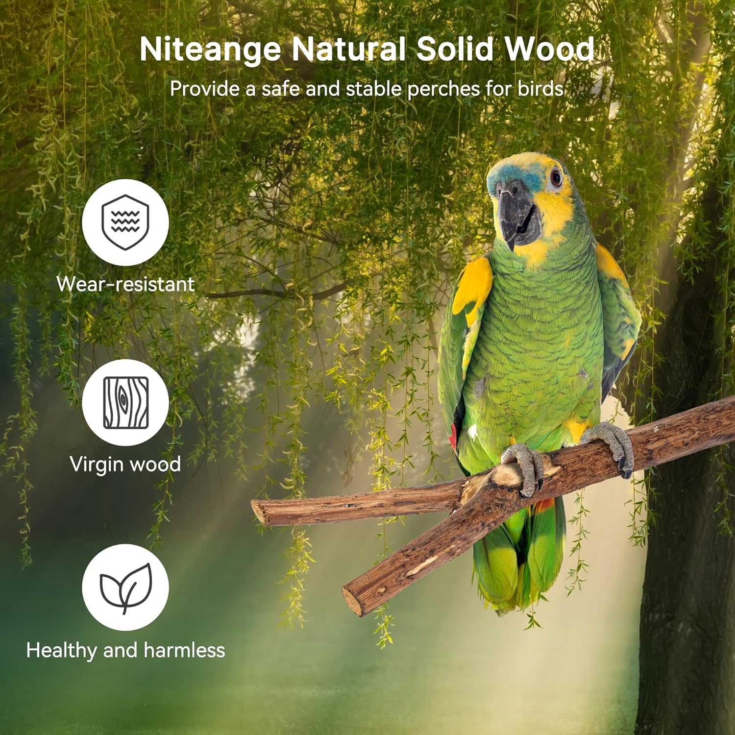 Niteangel Natural Wooden Perches for Bird Cages - Ideal for Cockatiels, Parakeets, Finches & Other Caged Birds (No-Bark, 2 Pack)