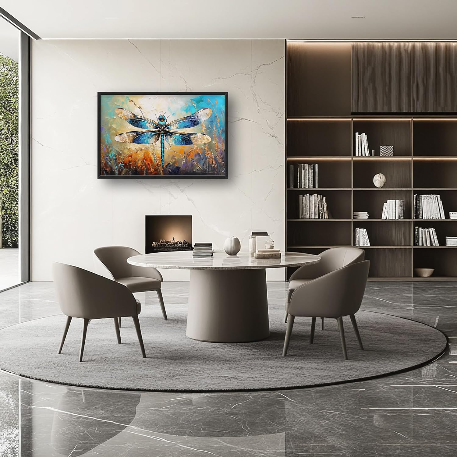 Quorin Dragonfly Large Wall Art Abstract Dragonfly Pictures Wall Decor Colorful Canvas Print Painting Artwork for Bathroom Living Room Bedroom 36L x 24W