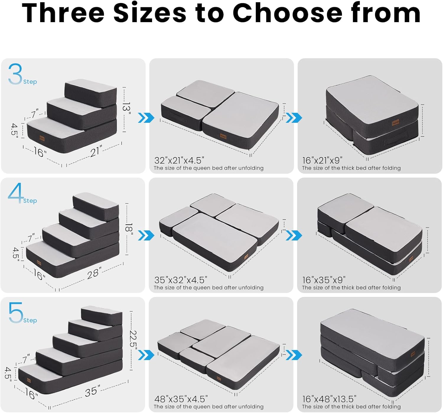 • Non-Slip Steps: 35D ultra-firm foam prevents wobbling. Anti-slip fabric on every step grips floors and pet paws, even when layers are split.