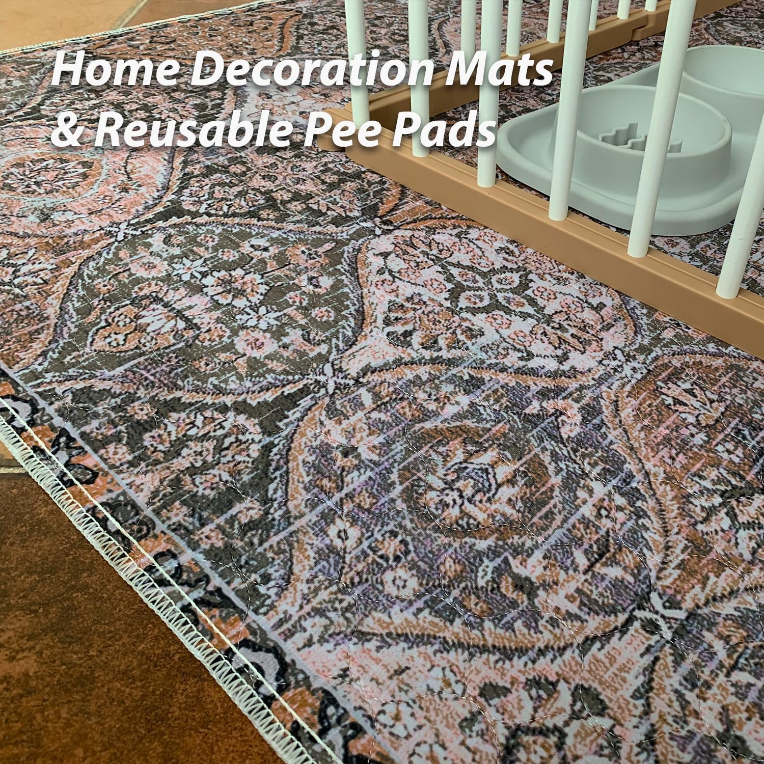 nunubaby Washable Pee Pads for Dogs, Stylish, Non-Slip and Leak-Proof Pee Pads. Reusable Potty Pads for Dogs for Crates and Floors.(Brown/Multi, 48" x48")
