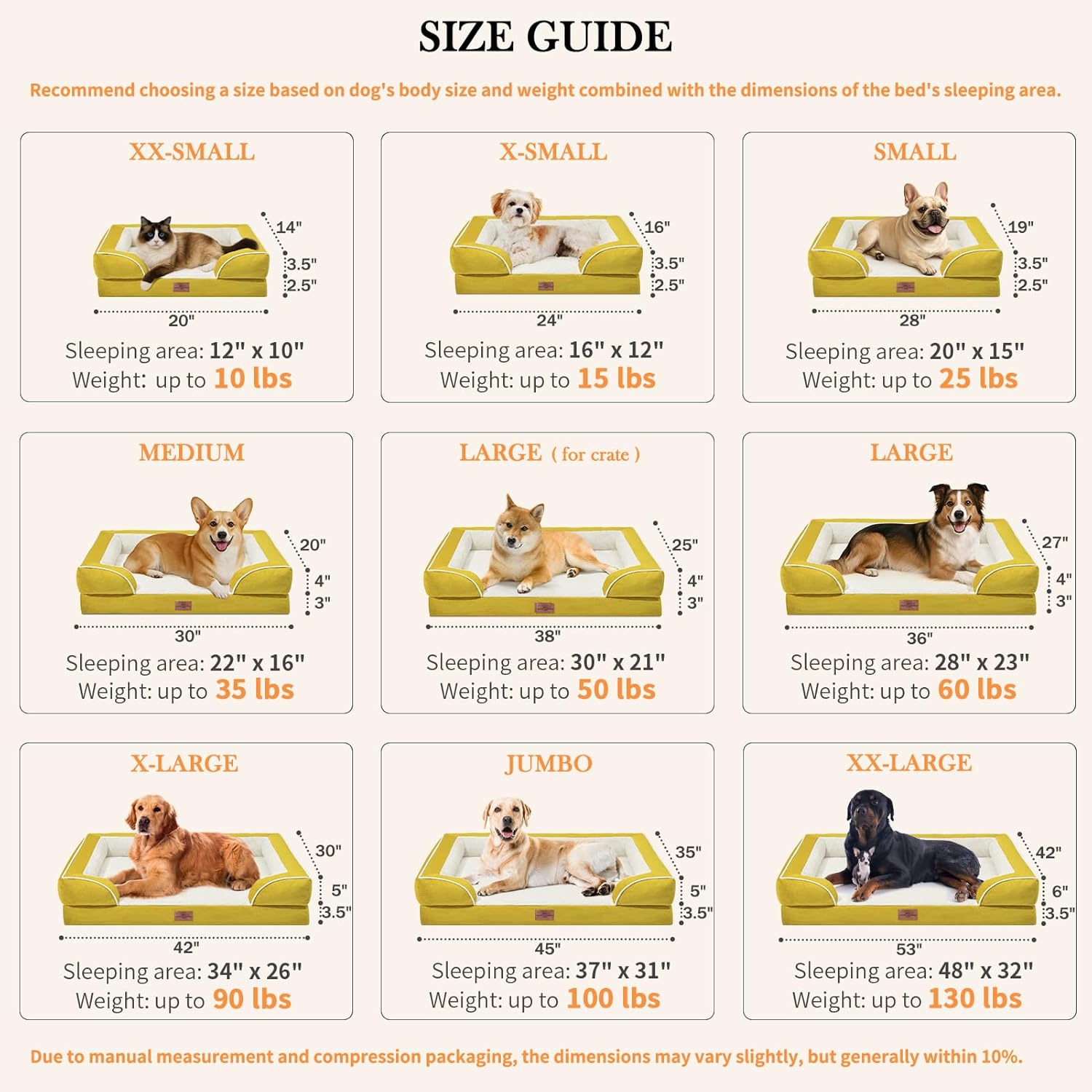 Comfort Expression Small Dog Beds Waterproof Orthopedic Foam Dog Sofa Beds for Small Dogs Comfy Pet Bed with Washable Removable Cover & Non-Slip Bottom(X-Small,Spicy Mustard)