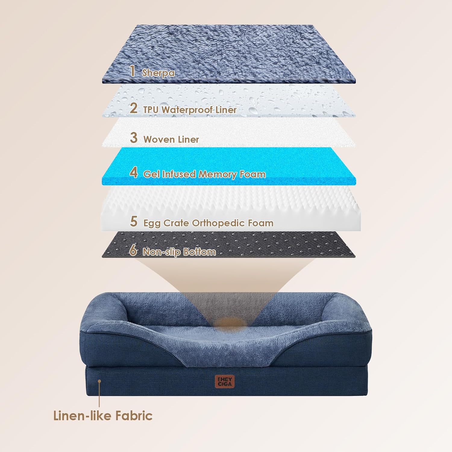 - MEMORY FOAM: The EHEYCIGA orthopedic dog bed, endowed with memory foam and egg crate foam, ensures balanced support and pressure release. Its blend of plushness and stability is ideal for older dogs, easing the strain on their joints.