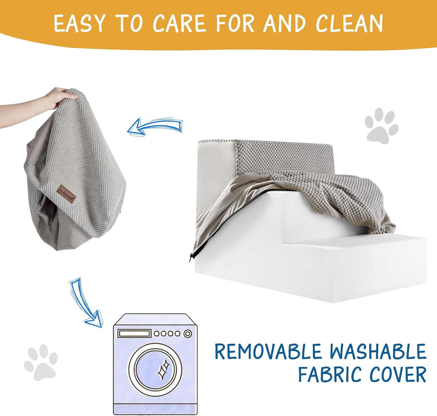 • Easy to Clean - The pet stairs feature a removable and washable cover, designed with a zipper for convenient hand washing or machine washing of the soft cover. Please refrain from machine washing or drying the foam core