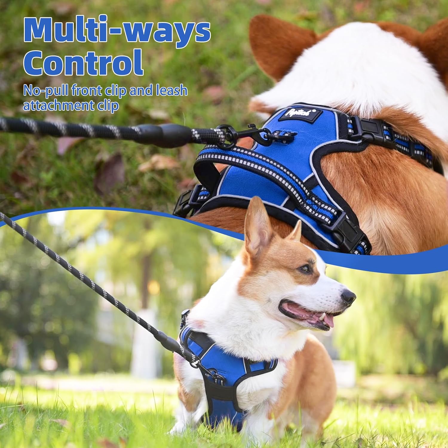 PUPTECK No Pull Dog Harness Small Sized, Adjustable Reflective Dog Harness with Handle Easy Control, Comfortable Soft Padded Pet Vest Harness for Small Dogs, Blue S