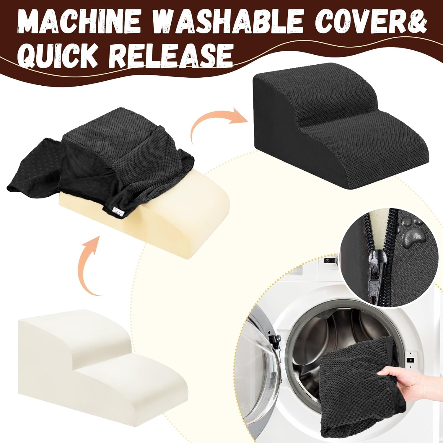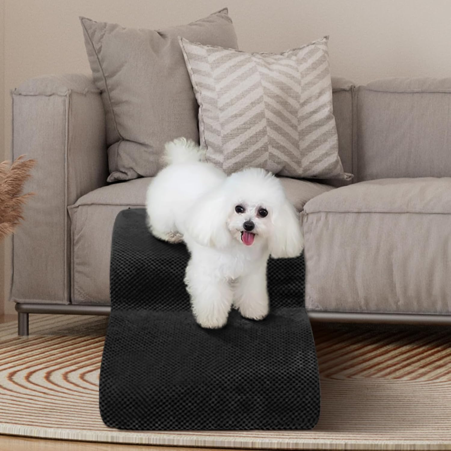 • Double Sided Anti Slip: The dog steps cover is made of corduroy with greater friction than other fabrics, which provides extra grip while in use, the bottom features nonslip rubber dots, preventing pets from sliding while climbing, providing pets with double safety protection
