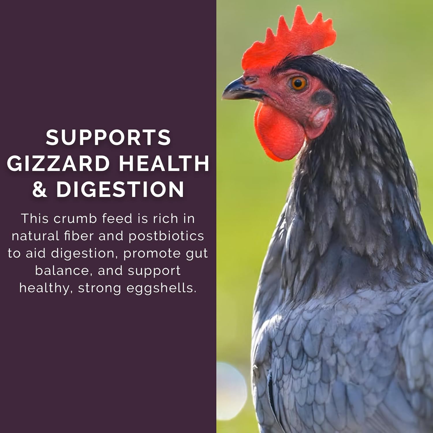 • Supports Gizzard Health & Digestion: This 40-pound bag of crumb feed contains natural fiber and postbiotics that help maintain digestive wellness and support strong eggshells.