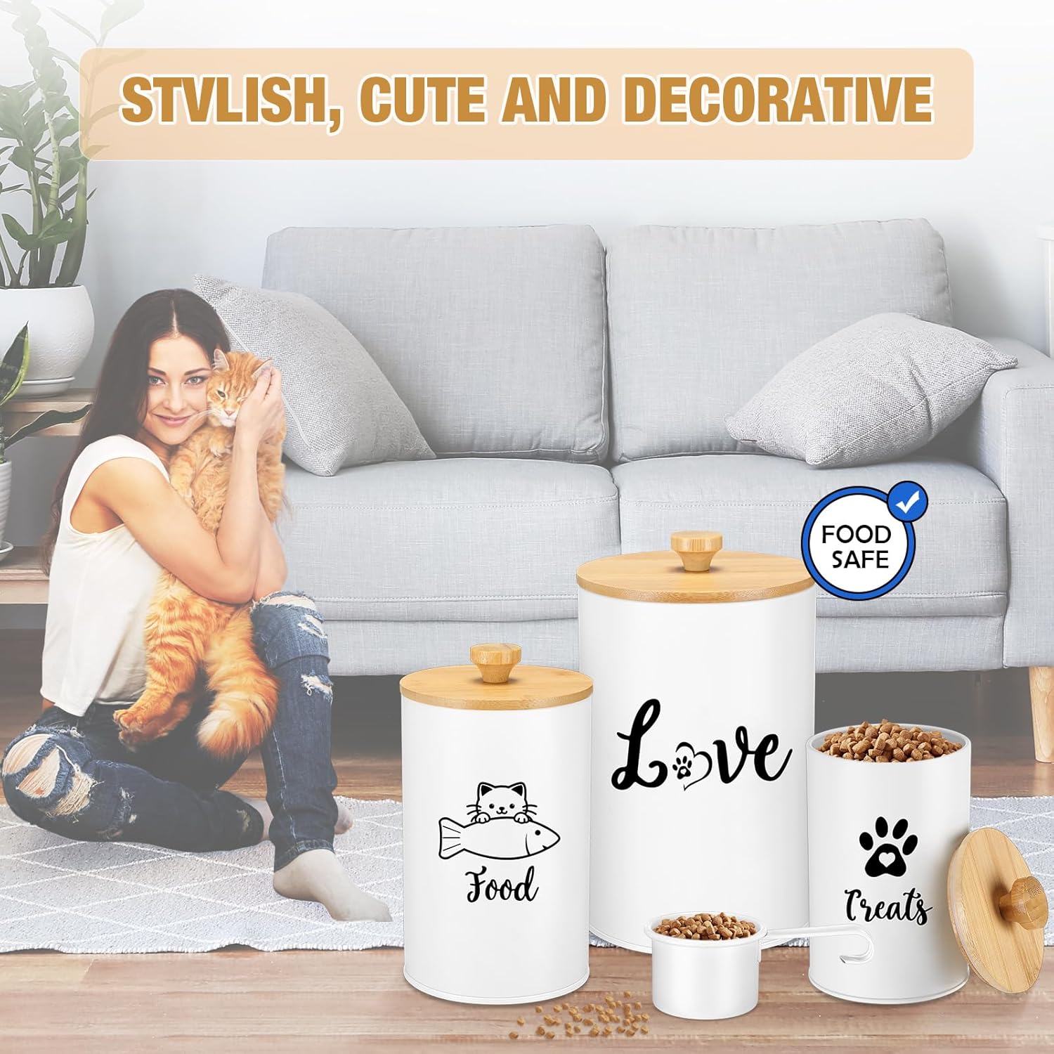 - Sealed Lid Keeps Food Fresh: each cat food container for kitchen counter is equipped with a sealed bamboo lid, which can effectively keep the food fresh and dry, and is also convenient to take at any time, ensuring the sealed preservation of pet food; The set also comes with a spoon for easy access