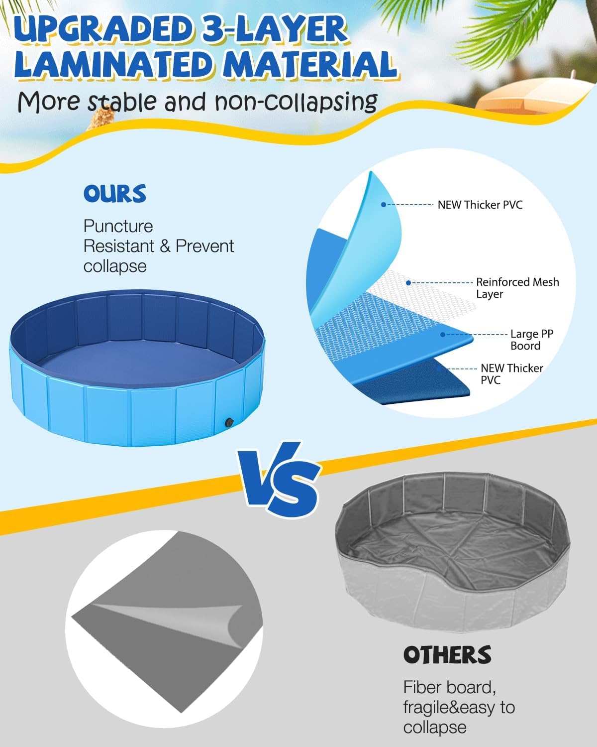 - PORTABLE & CONVENIENT – The dog bath pool is portable and convenient for people to carry and store at any time, which allows your lovely pets to enjoy in the water; There is no need to inflate