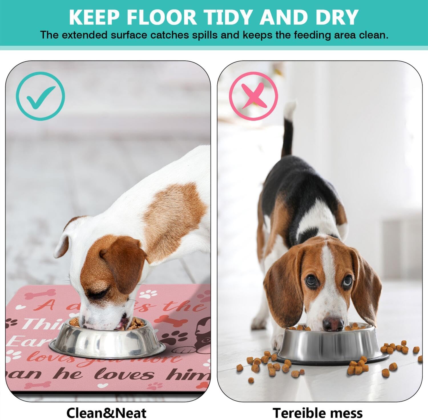 - Super Safe Non-Slip Rubber Mat for Dog Bowls - Our dog feeding mat features a special non-slip rubber backing that keeps the dog bowl mat firmly in place, even with energetic pets! The pet food mat won't bunch or slide during use. Perfect as pet mats for food and water in kitchens or feeding areas.