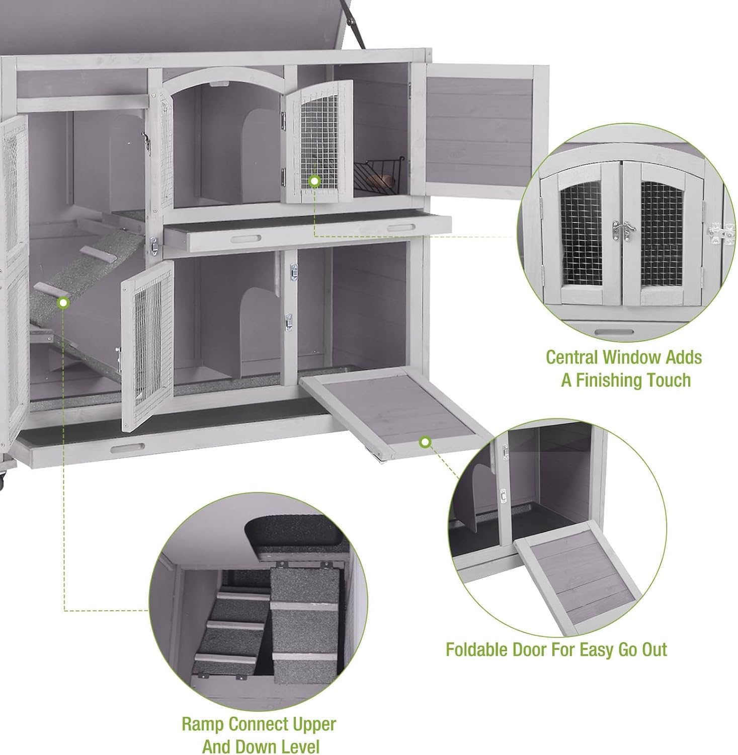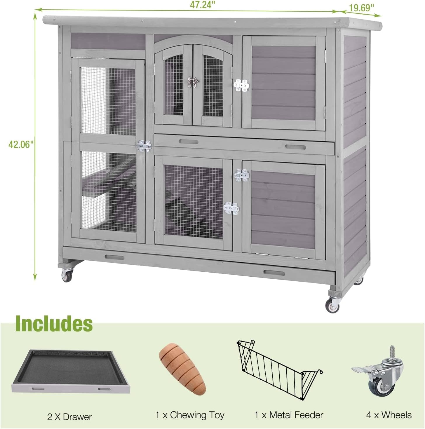 GUTINNEEN Guinea Pig Cage 2 Story Indoor Rabbit Hutch Outdoor Bunny House with Wheels and Leakproof Tray 47" L