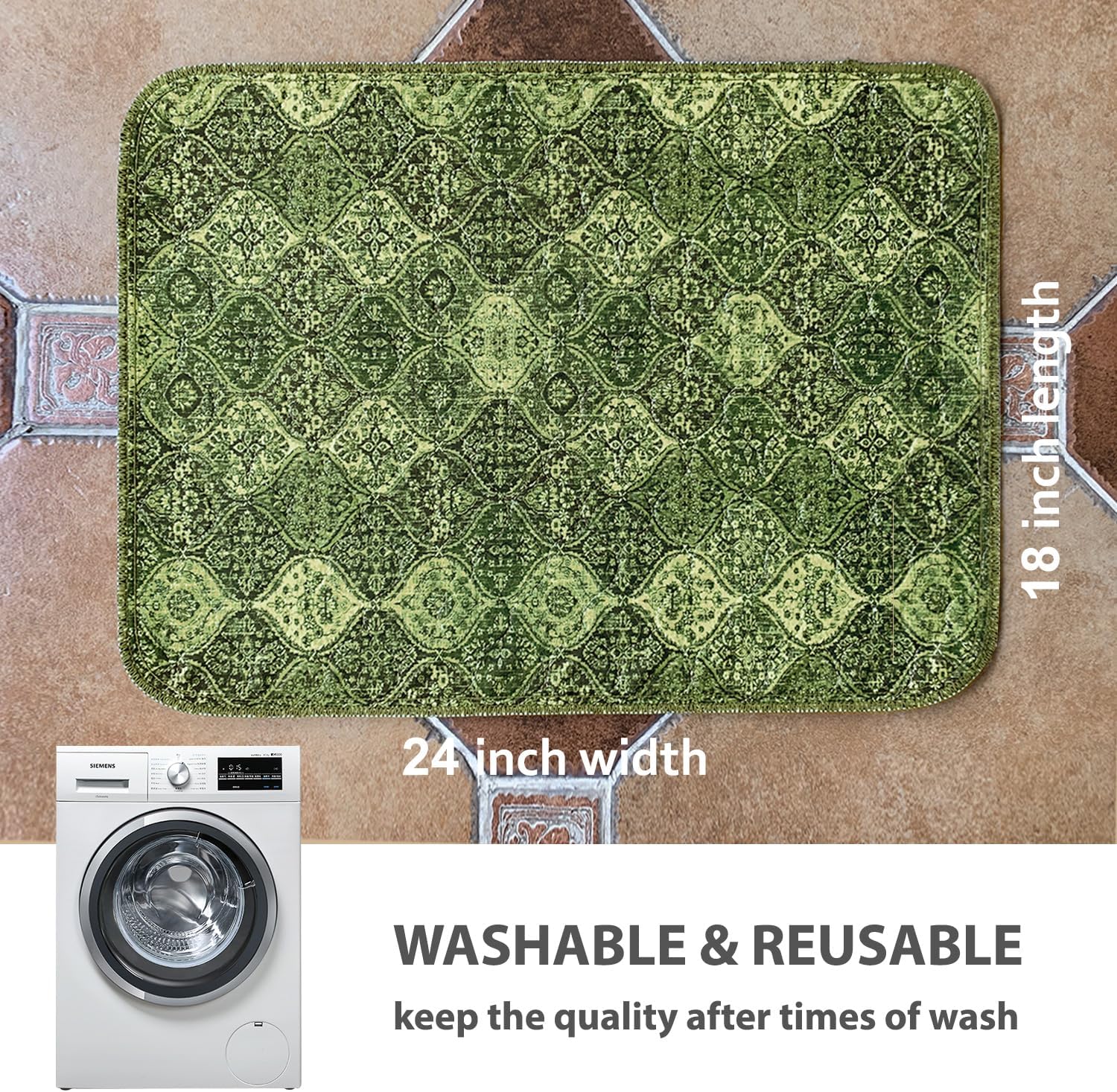 nunubaby Washable Pee Pads for Dogs, Stylish, Non-Slip and Leak-Proof Pee Pads. Reusable Potty Pads for Dogs for Crates and Floors.(Green/Multi, 18" x24")