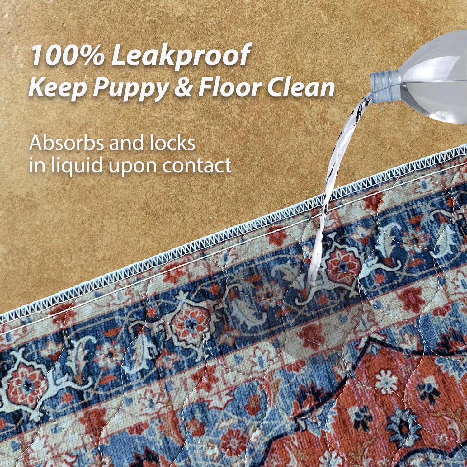 nunubaby Washable Pee Pads for Dogs, Stylish, Non-Slip and Leak-Proof Pee Pads. Reusable Potty Pads for Dogs for Crates and Floors.(Red/Floral, 36" x72")