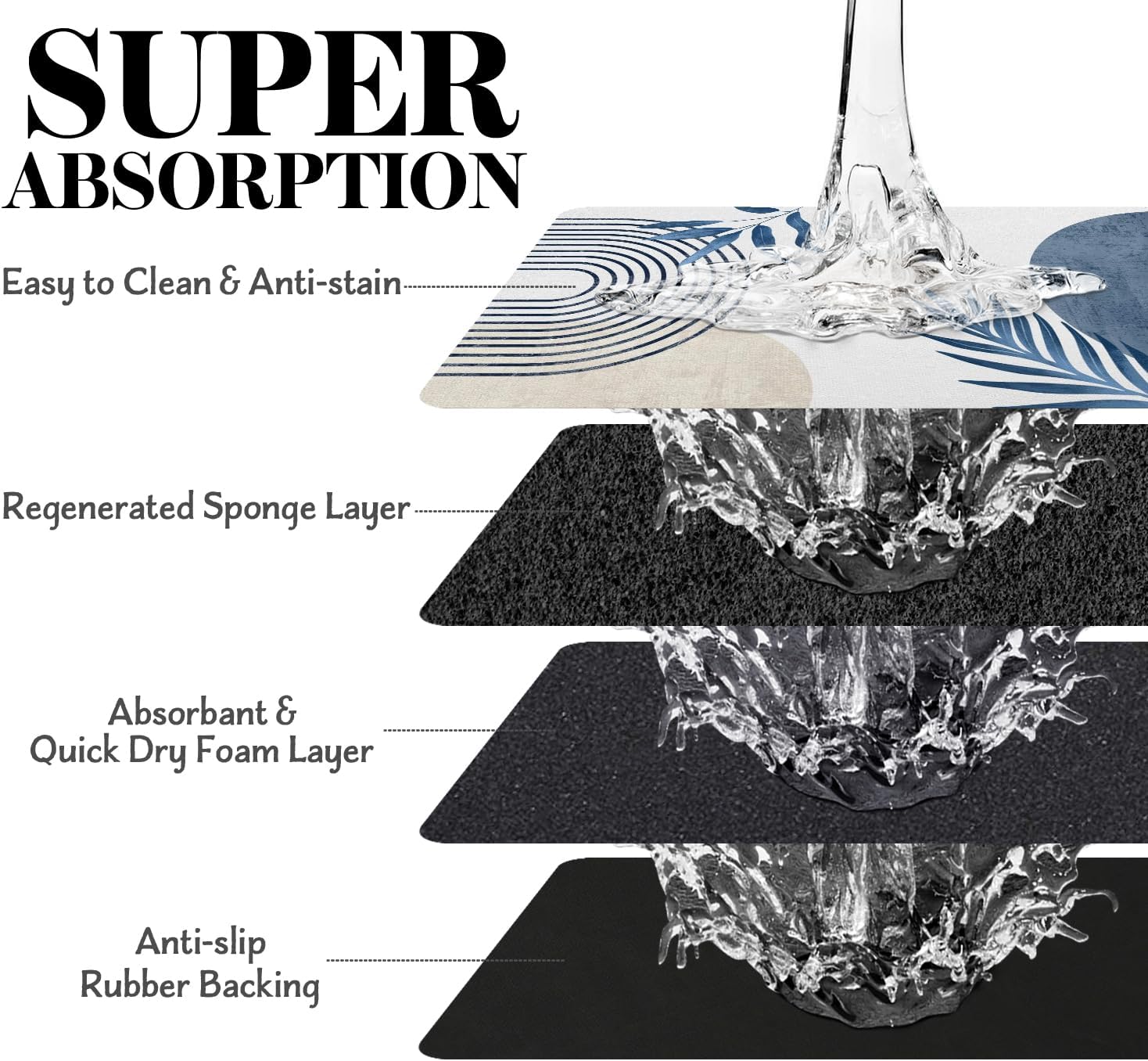 - Super Absorption: The dog mat for water bowl can absorb spilled water without leaving traces and dry quick, avoid wetting pet paws even for messy drinkers. And it does not attract pet hair like traditional silicone dog bowl mat.