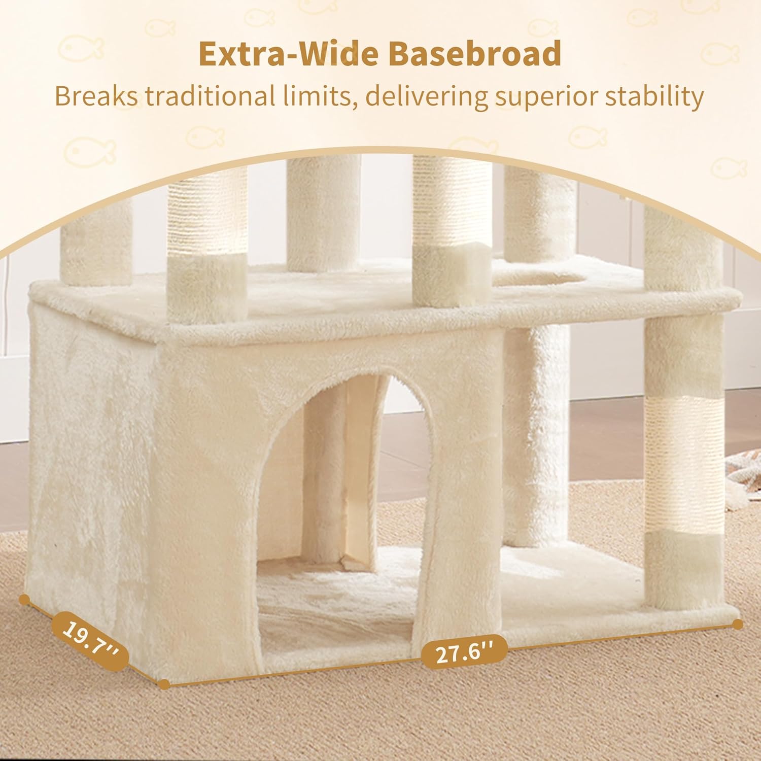 Heybly Heavy Duty Cat Tree, 71-Inch Tall Tower for Large Maine Coon with Extra-Large Baseboard, Cat Condo Furniture with Multi-Level Platforms, 2 Hammocks and 12 Scratching Posts, Beige HCT037M