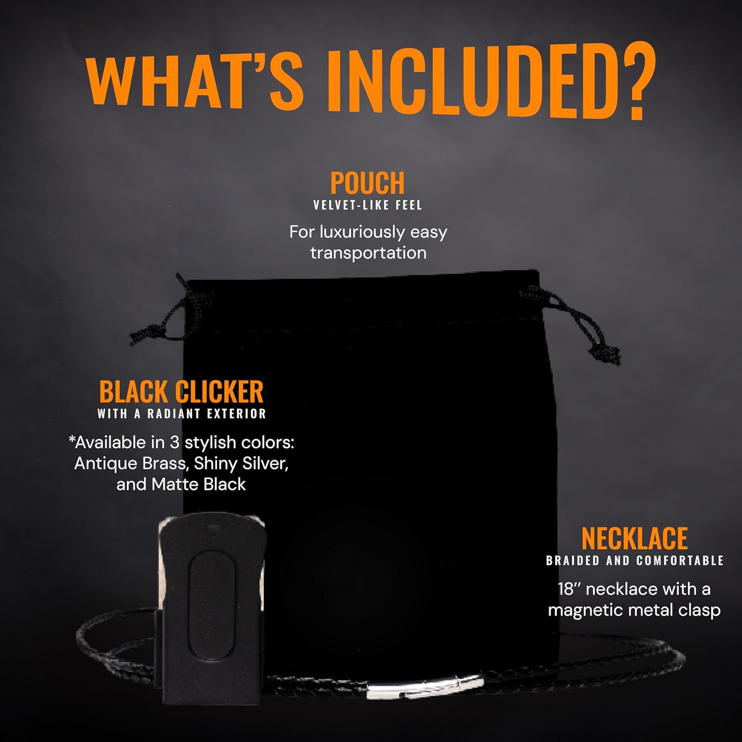 • Stand Out with Class: In a sea of ordinary clickers, our elegant Black Puppy Training Clicker sets you apart. Embrace sophistication and style while improving your dog agility. Our dog accessories clicker product has a black exterior and also features a braided leather necklace with a magnetic metal clasp that matches your style perfectly