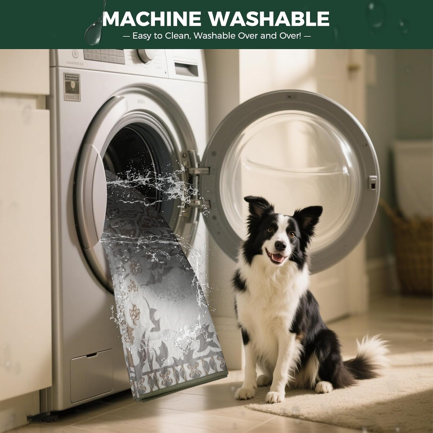 - Super Absorbent: Our dog pad absorbs up to 2L of liquid with a thick, heavyweight cotton layer — perfect as a dog playpen mat to keep your pup’s space clean and dry all day.