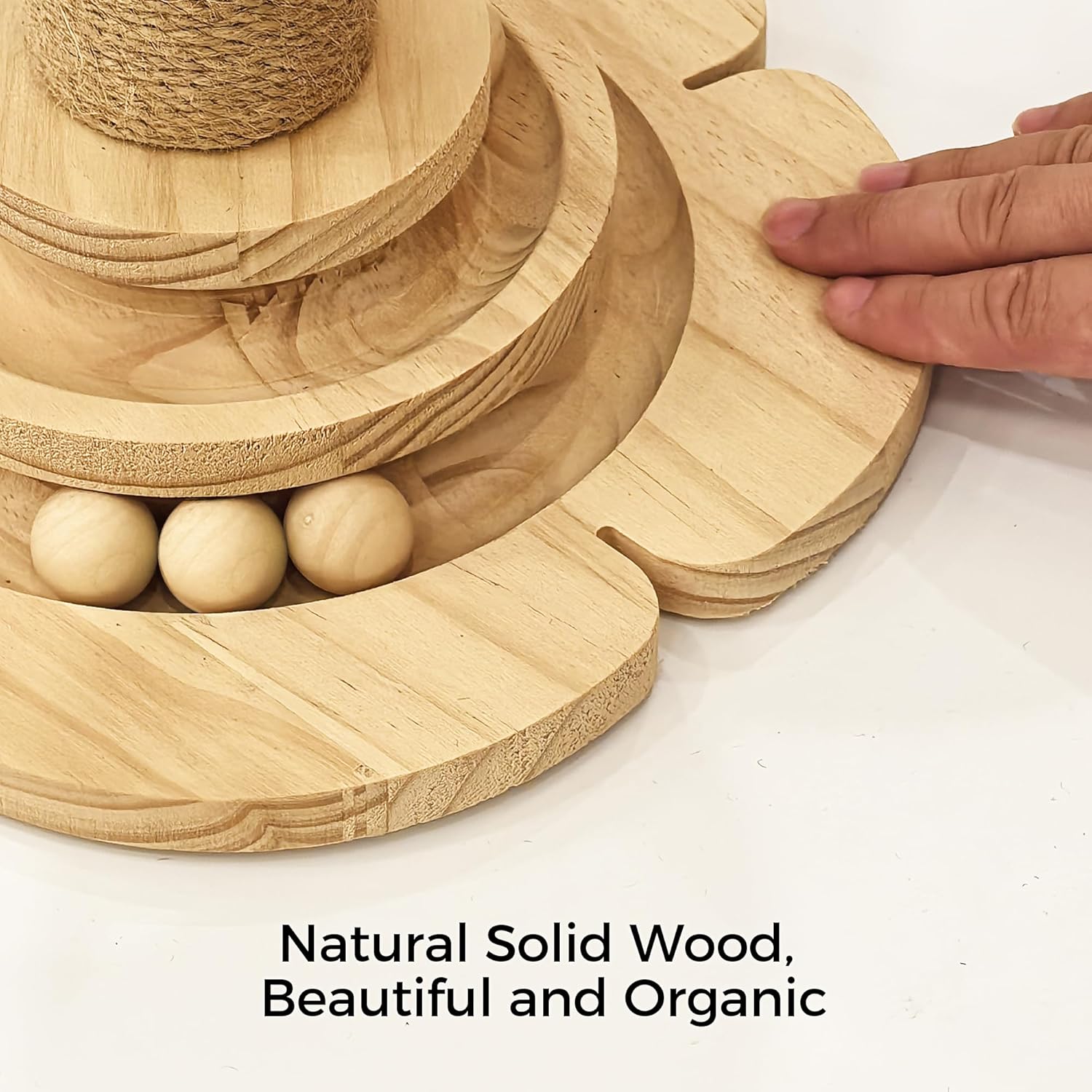 - Premium Material: Crafted from natural solid wood, this cat scratcher prioritizes eco-friendliness and health. The scratching post and ball are made of natural sisal fiber, ensuring durability and a great grip for extended playtime. The included interactive toy features a sturdy spring connection that resists deformation over time.