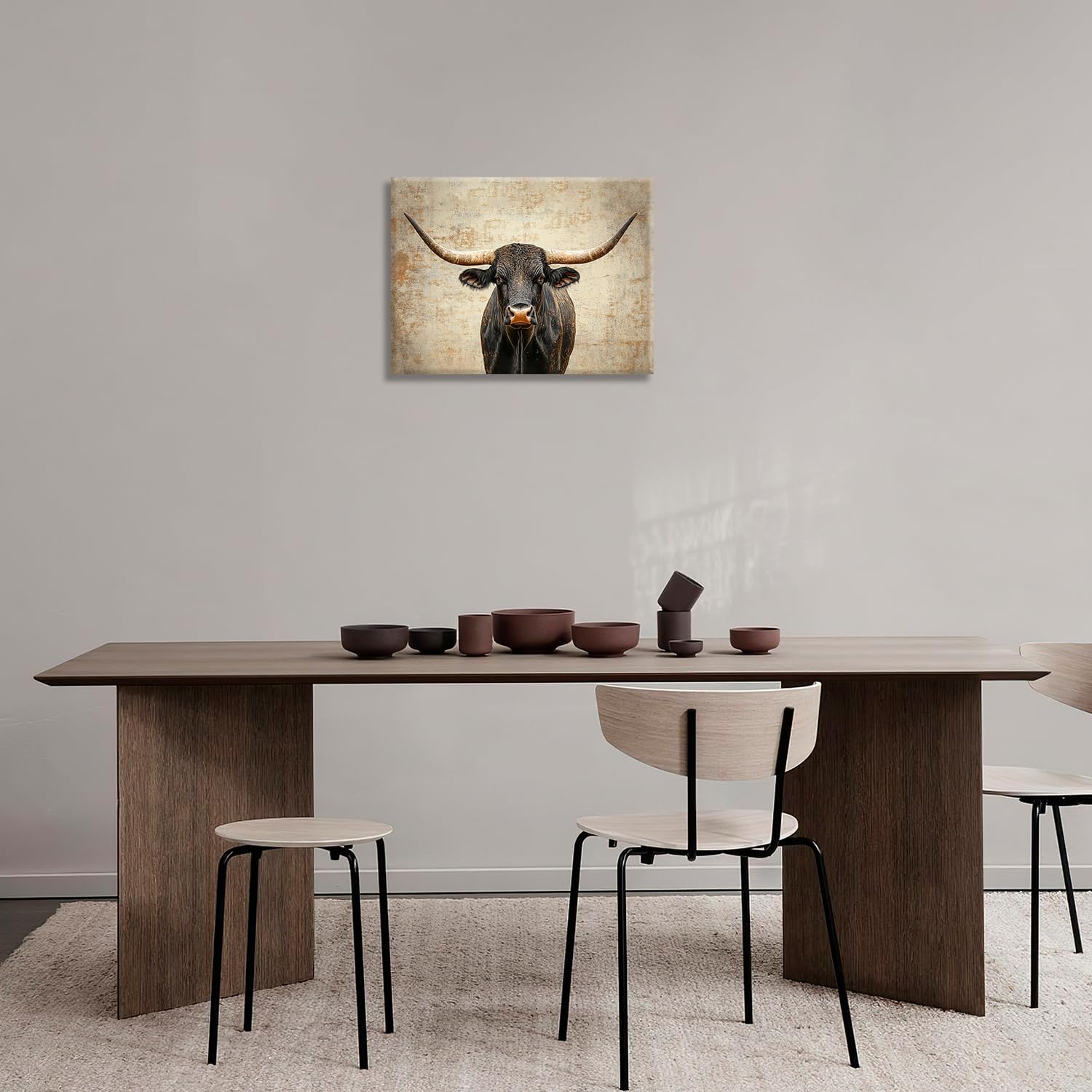 Rustic Highland Cow Pictures Wall Art, Farmhouse Black Cow Bathroom Wall Decor Animal Framed Painting Canvas Artwork for Bathroom Bedroom Living Room Decorations 20"L x 16"W