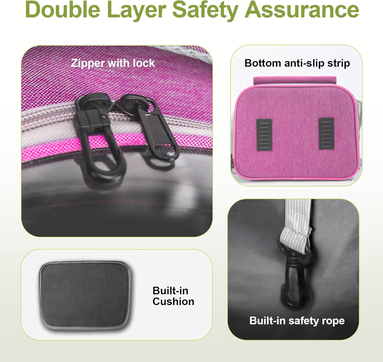 • Secure and Convenient Features: Designed with your pet's safety in mind, our cat backpack is equipped with a variety of secure and convenient features. The shoulder strap comes with a chest buckle, keeping the backpack stable and preventing shoulder strain. The zipper is designed with a lock, providing extra security during travel. Additionally, the built-in anti-escape safety leash ensures that your pets stay securely inside the backpack at all times.