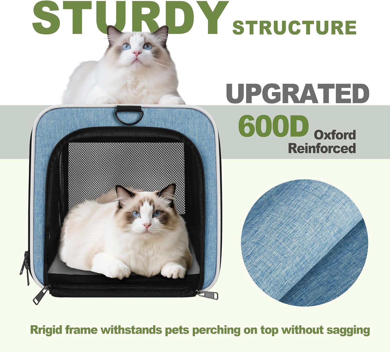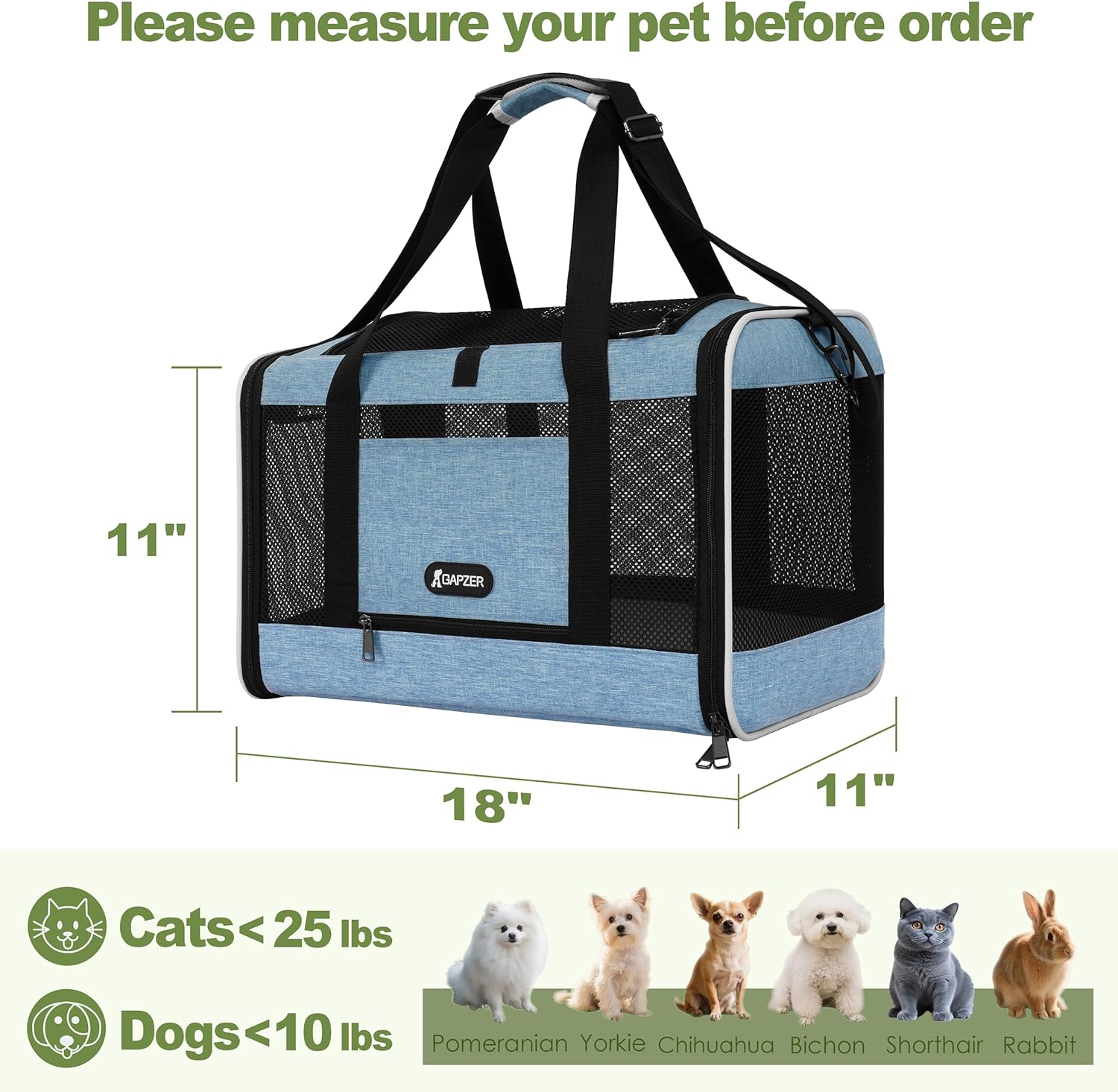 Cat Carrier 18 x 11 x 11 Top Loading Soft-Sided Pet Travel Bag Over 15lbs, Portable Small Dog Puppy Car Crate 10 lbs, Chihuahua Kennel Carry Case, Kitty Cloth Cage Medium Cat Under 25 Blue